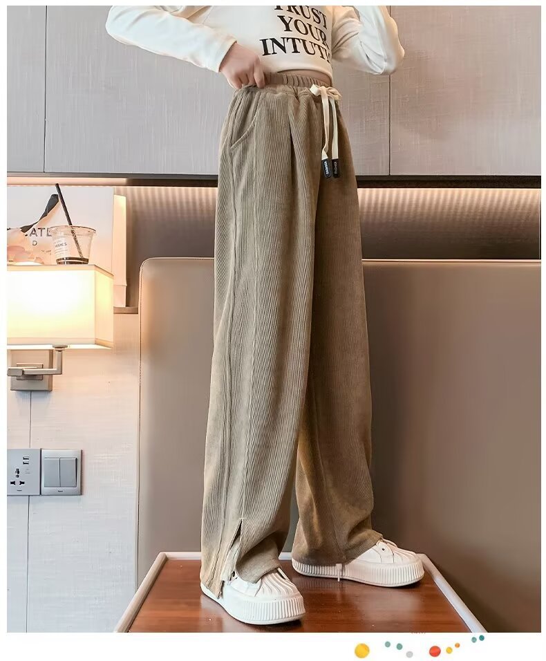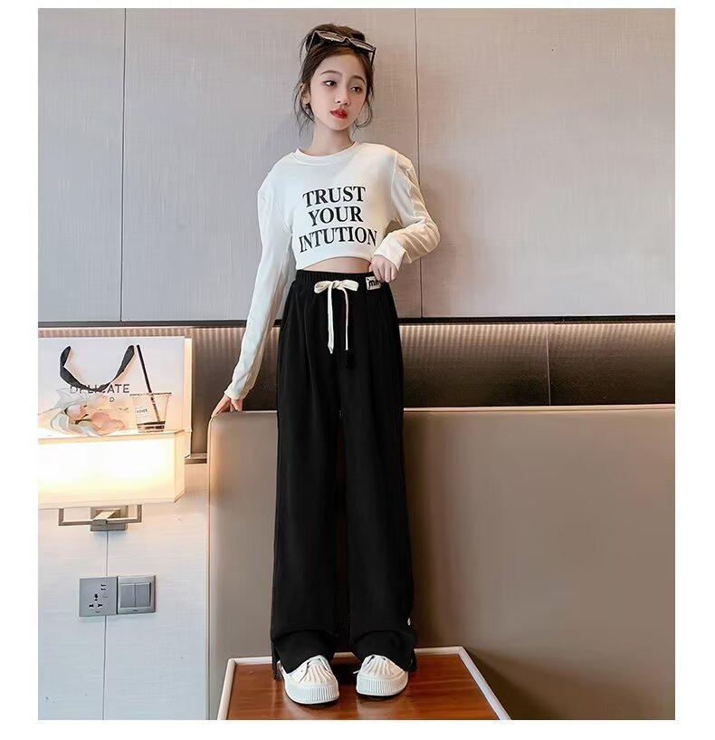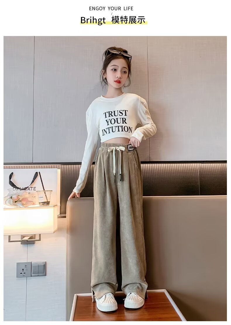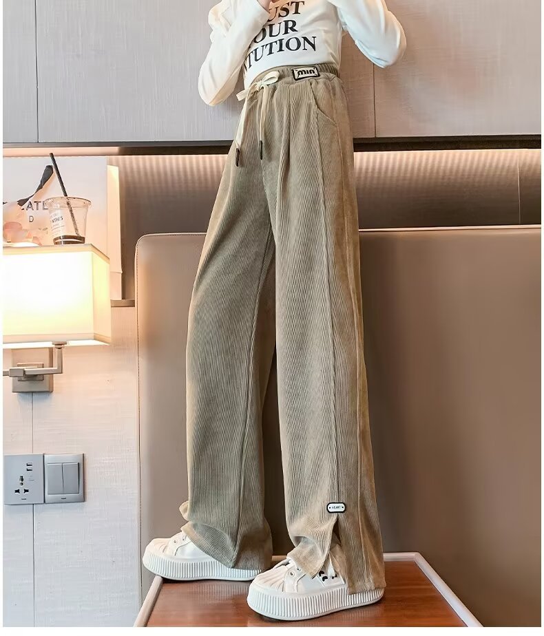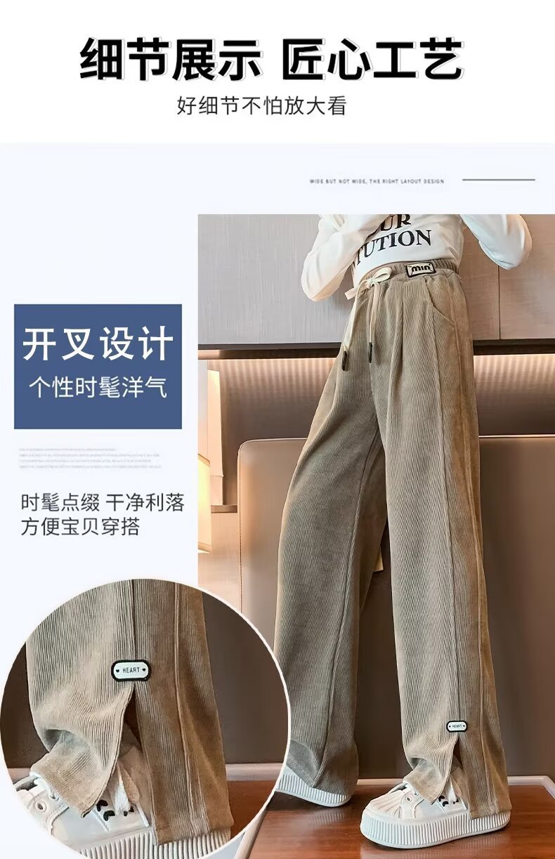 소녀 바지 봄과 가을 2024 새로운 어린이 넓은 다리 바지 여성 큰 어린이 가을 스트레이트 바지 스포츠 바지 기모스토어 가기