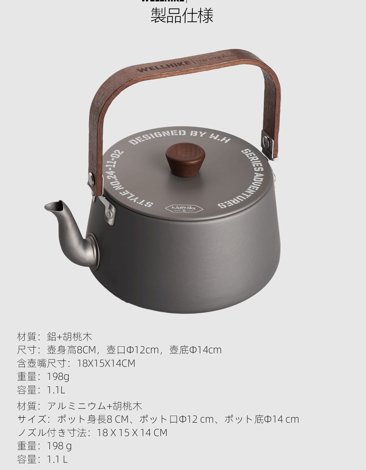 1.1L 야외 캠핑 주전자 하드 산화 알루미늄 합금 주전자 캠핑 커피 주전자 피크닉스토어 가기