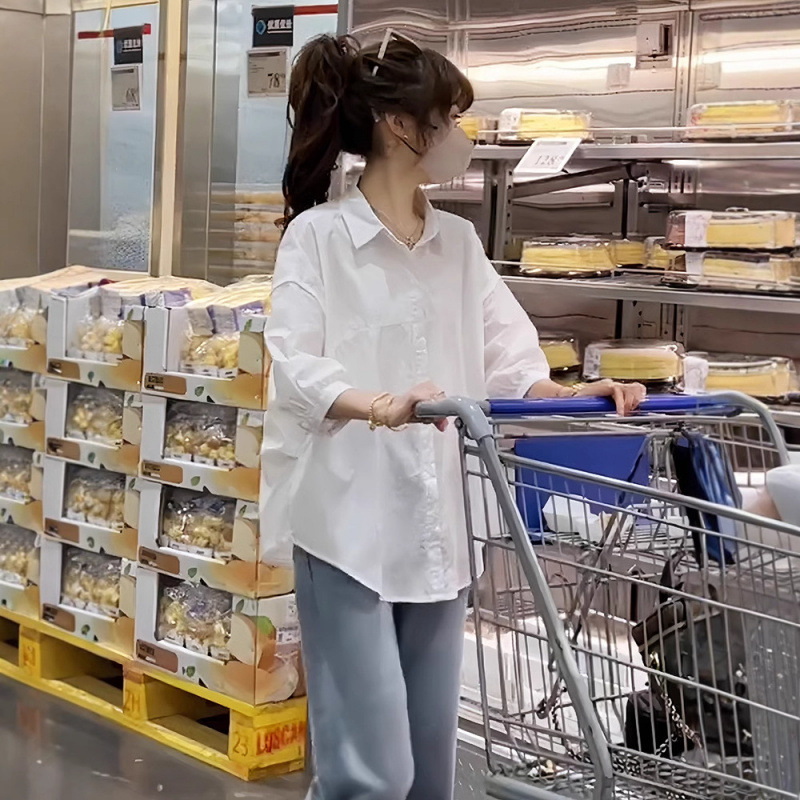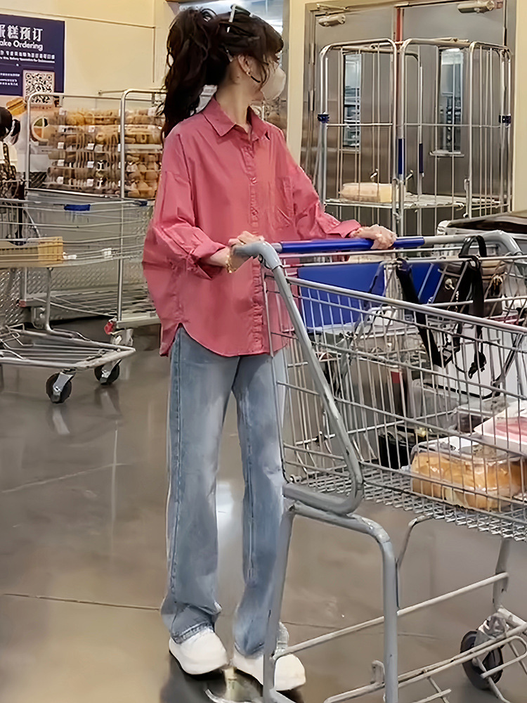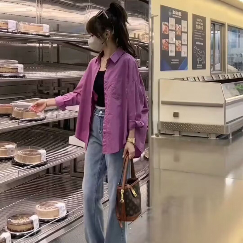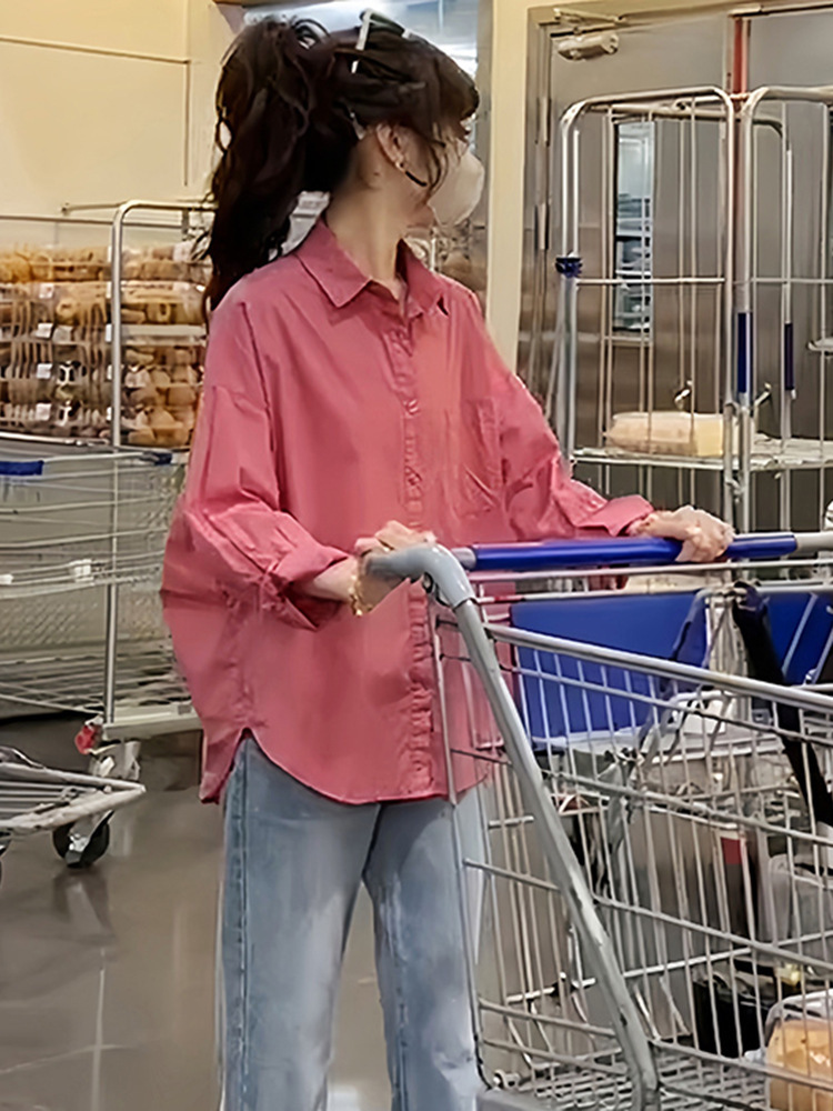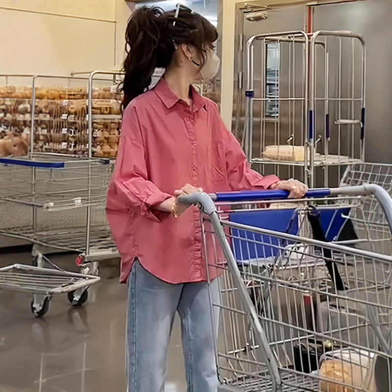 셔츠 여성 캐주얼 패션 2024 가을 새로운 한국 스타일 루즈 디자인 셔츠 다용도 슬리밍 탑스토어 가기