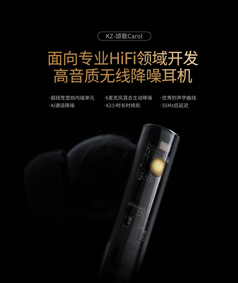 KZ-Carol 능동적 인 소음 감소 블루투스 헤드셋 hifi 음질 ANC 소음 감소 긴 내구 국경 간 개인 모델 TWS 헤드셋스토어 가기