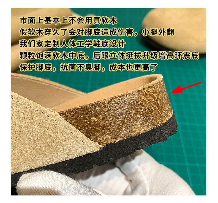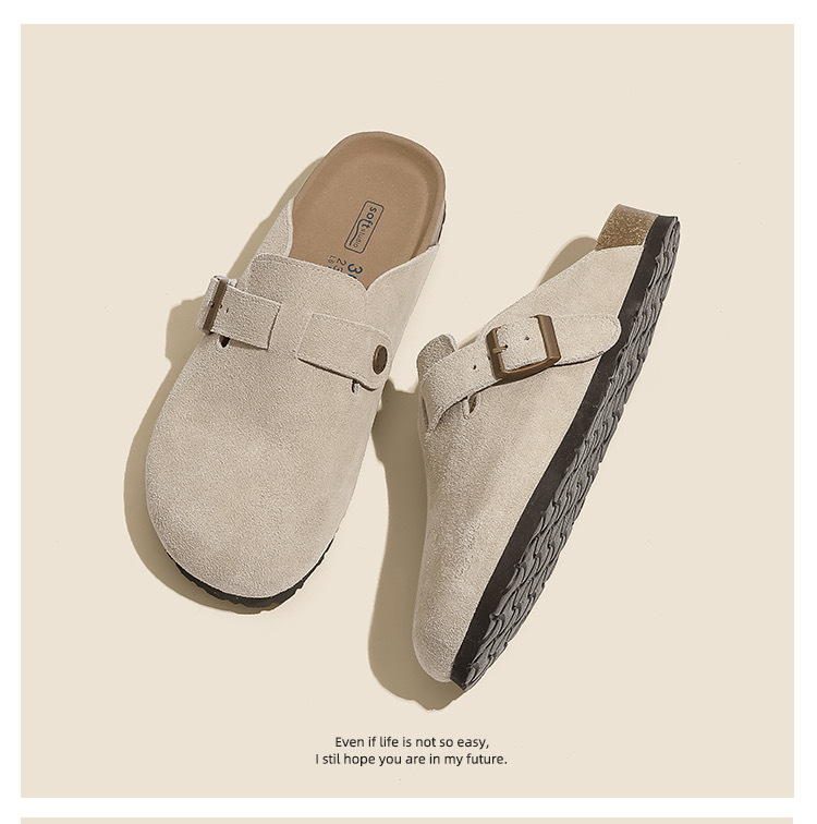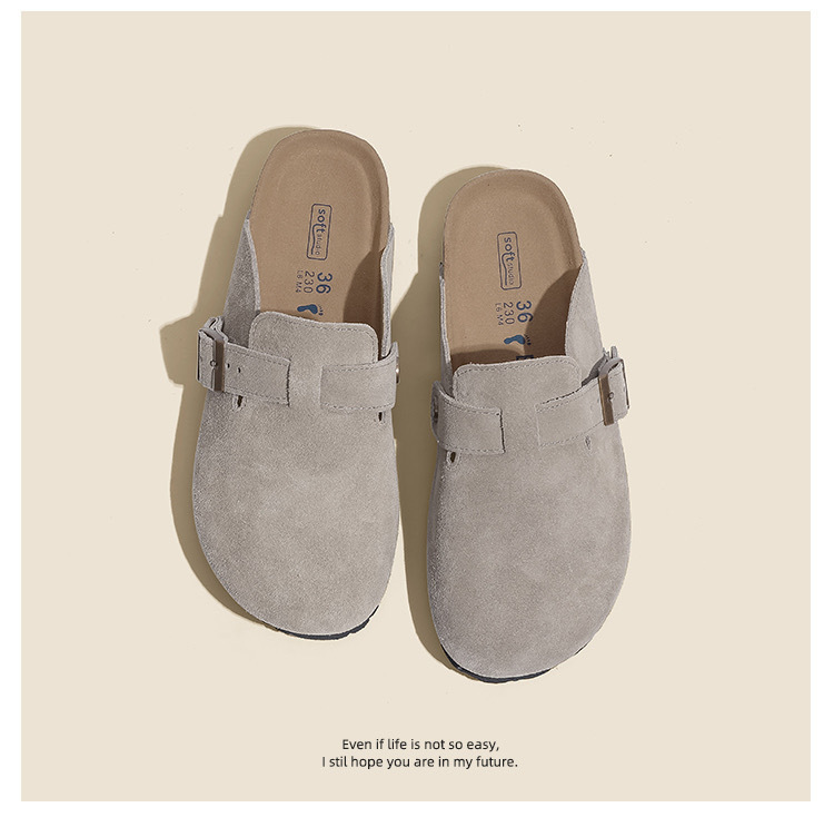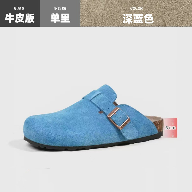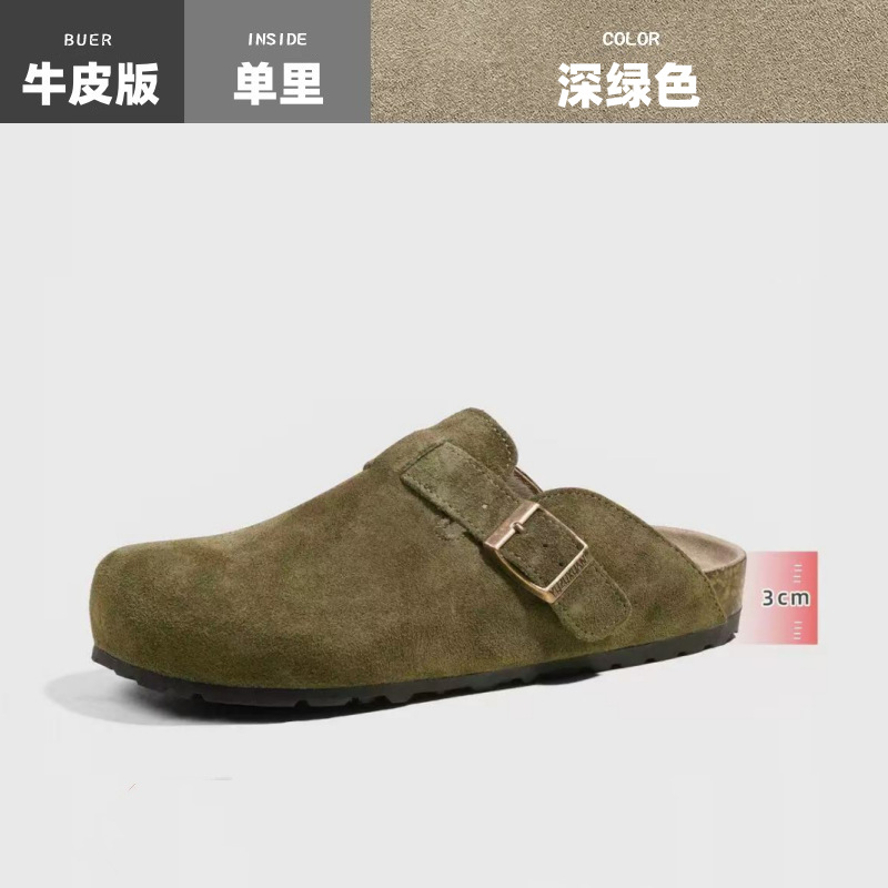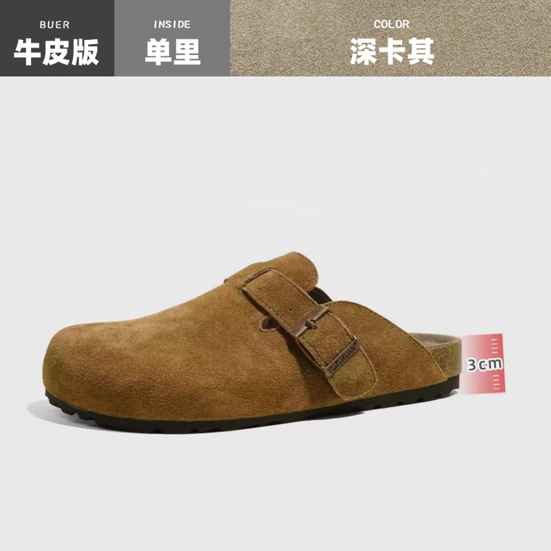 Cowhide ~ Half-drag Birkenth 슈즈 두꺼운 단독 캐주얼 코르크 단독 출생 Baotou 슬리퍼 플러스 사이즈 남성과 여성