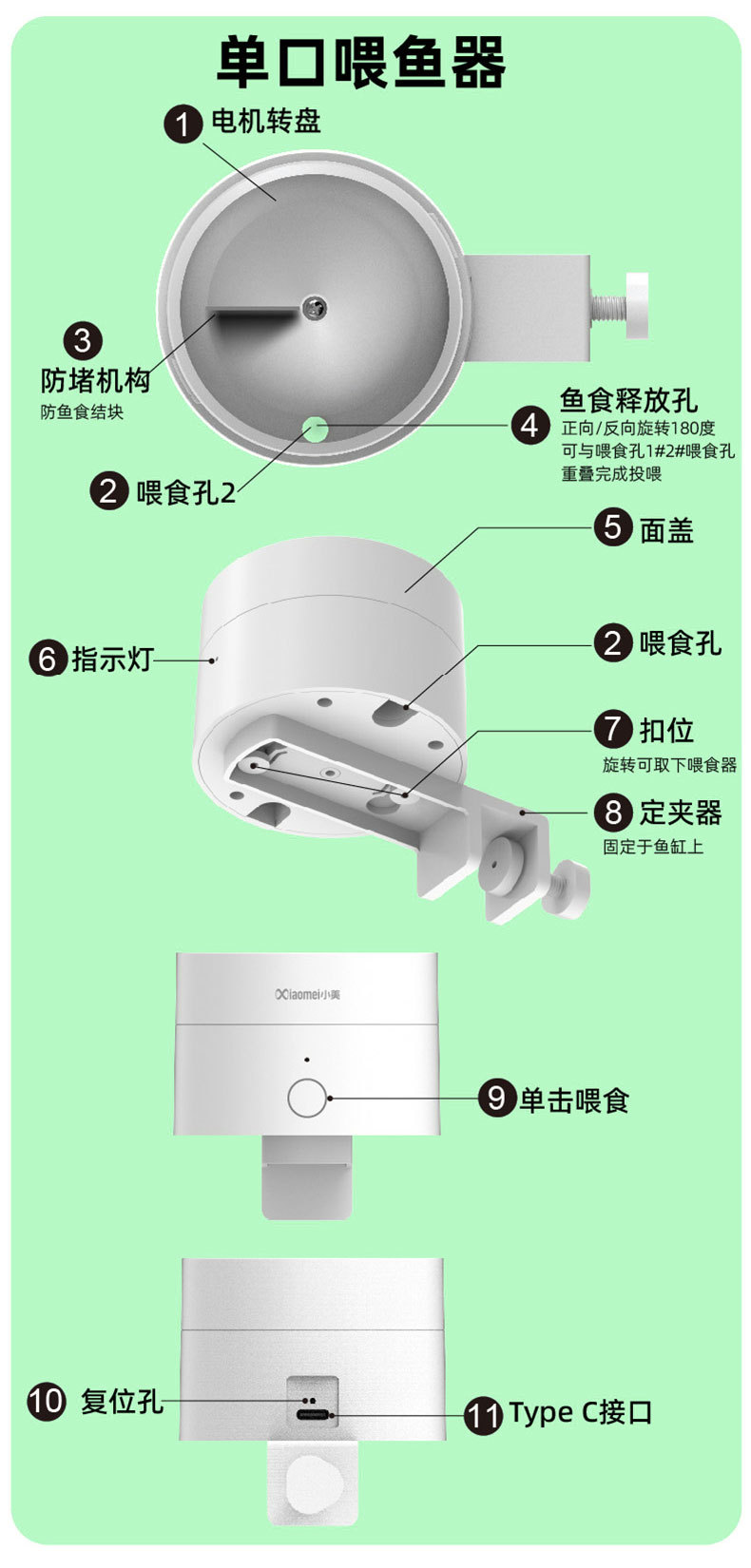 물고기 단일 먹이 입을 두 번 먹일 수있는 새로운 WiFi 원격 작은 미니 원격 공급 장치
