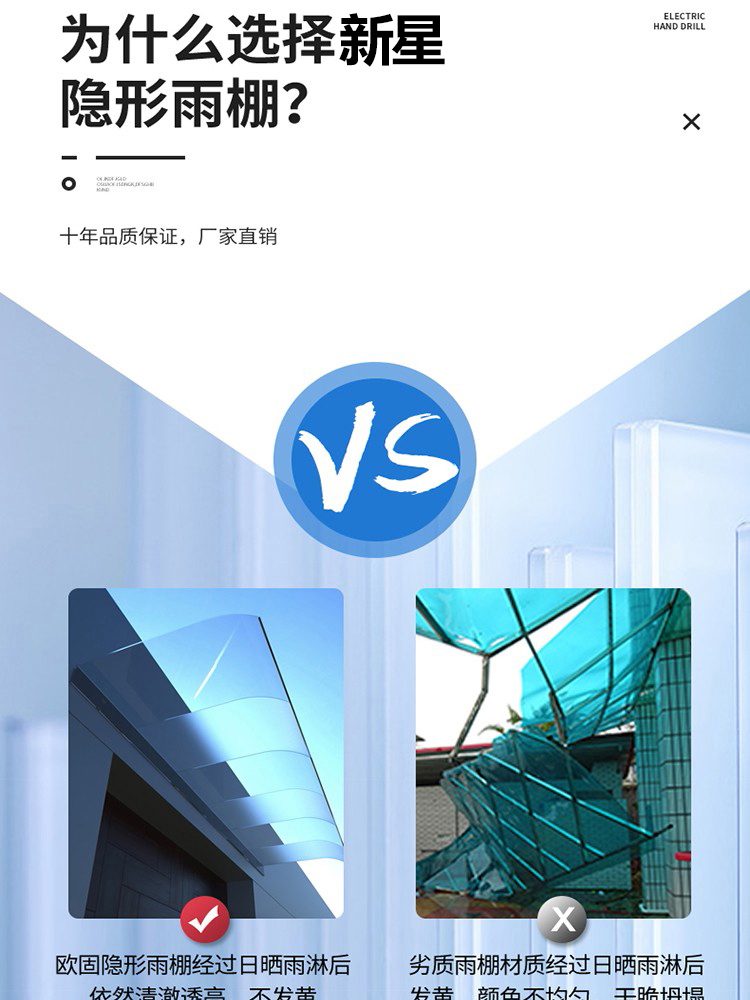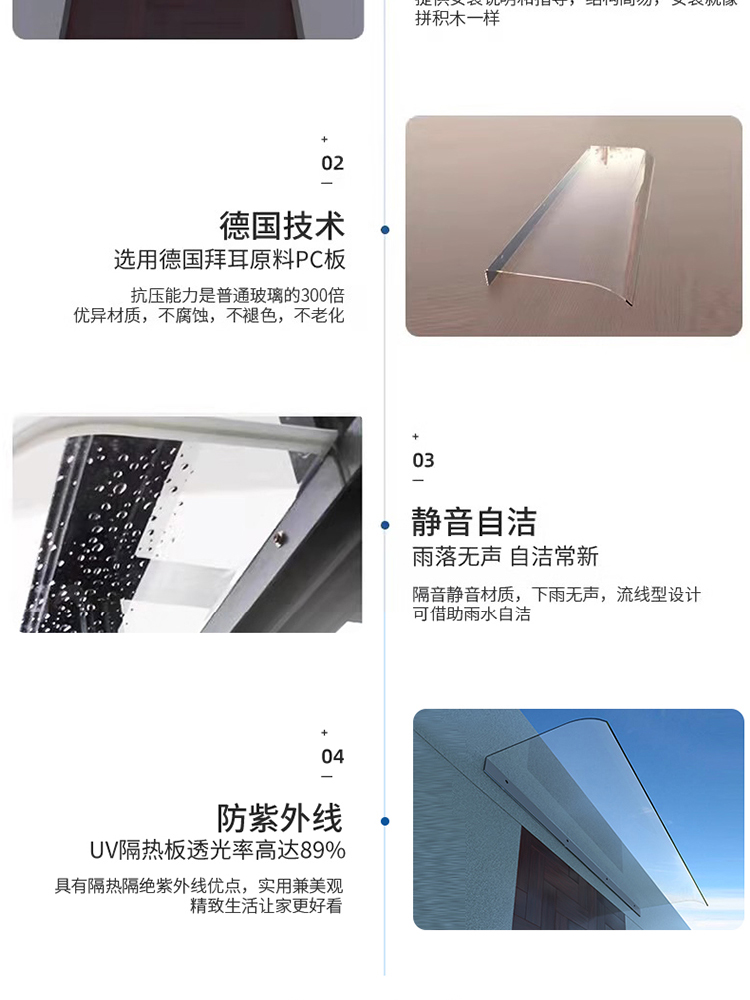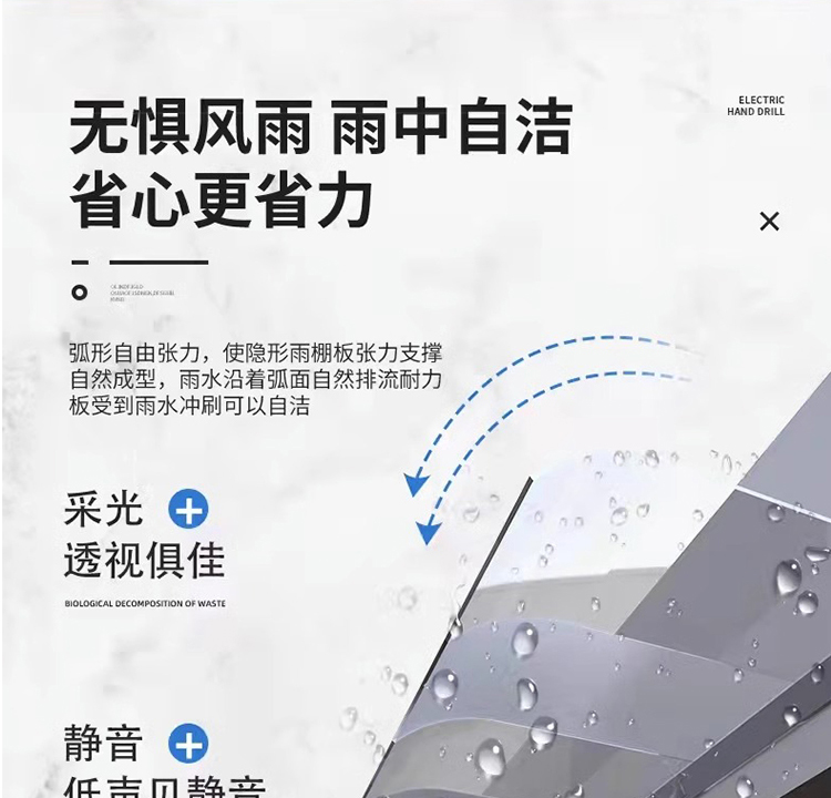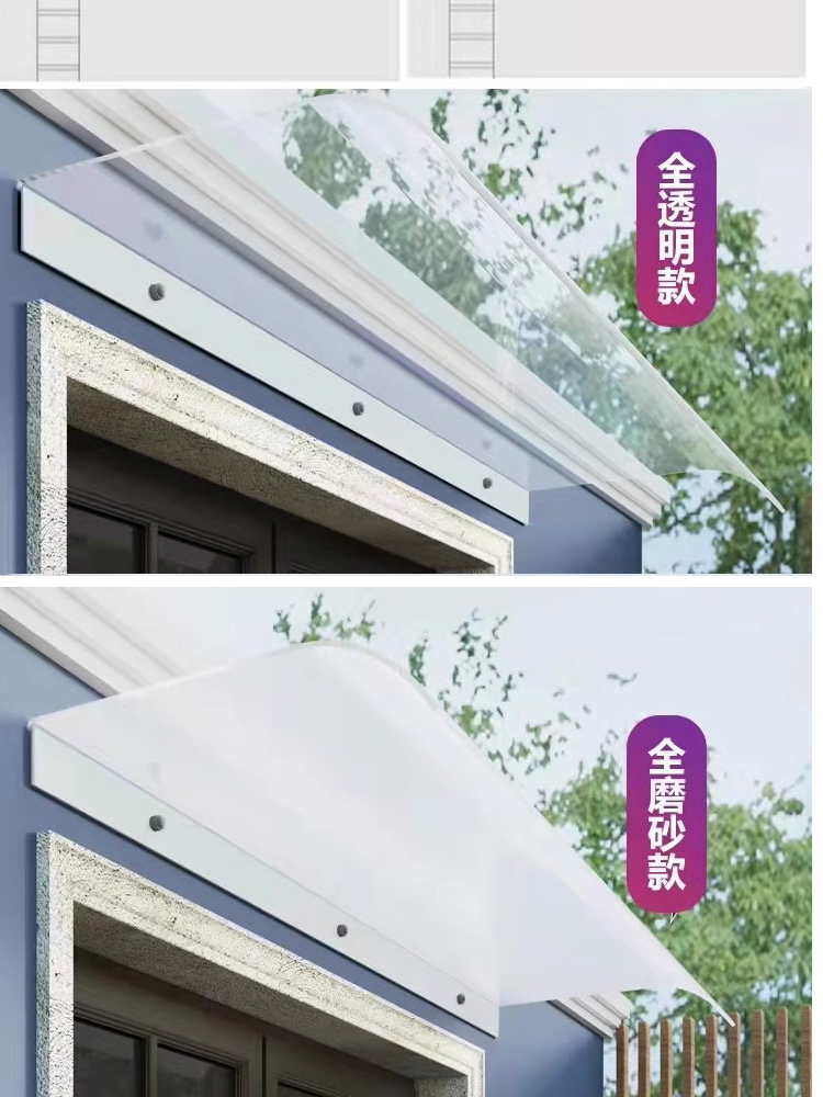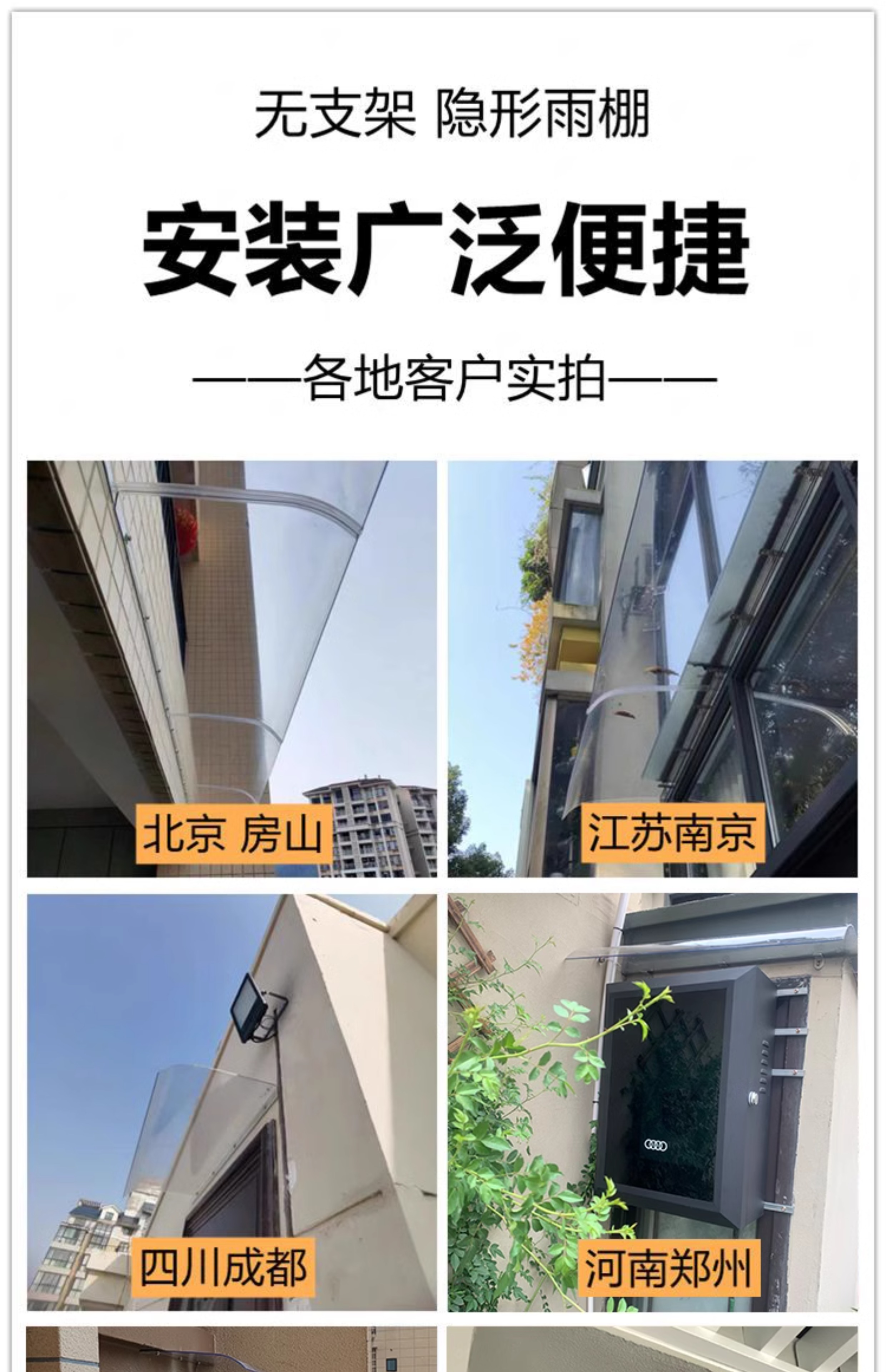 투명 브래킷이없는 캐노피 배플 가정용 발코니 Eaves 창 도어 헤드 플렉시 글래스 햇빛 비길스토어 가기