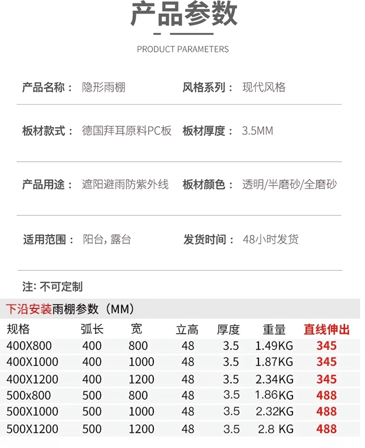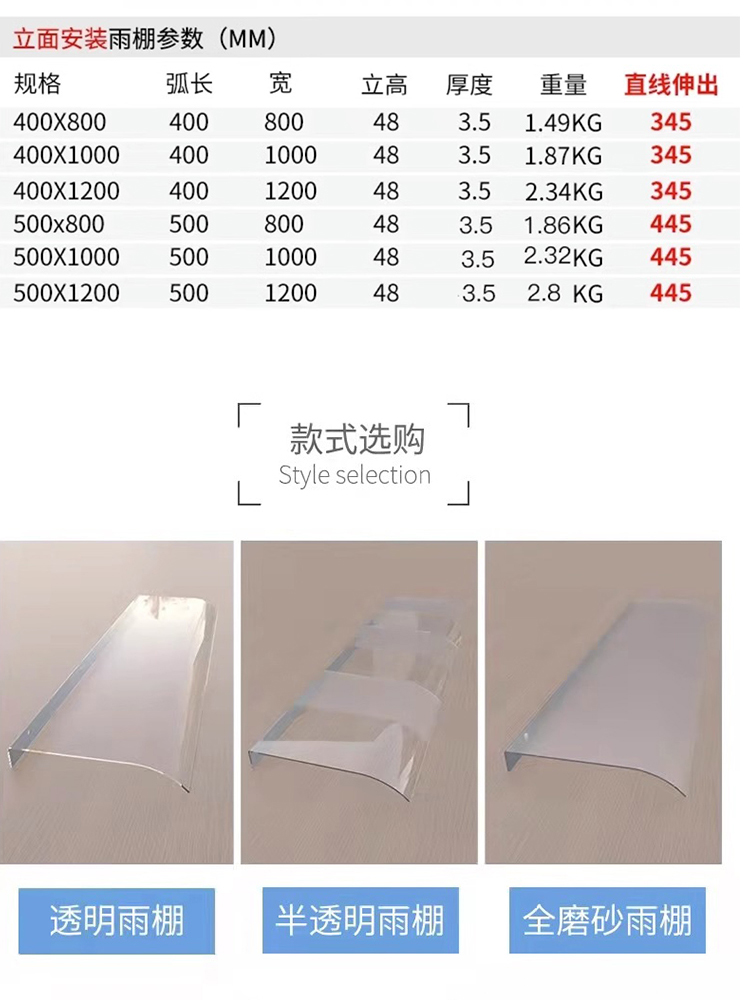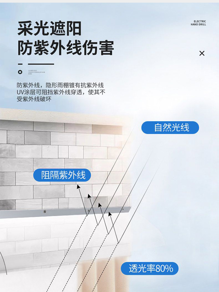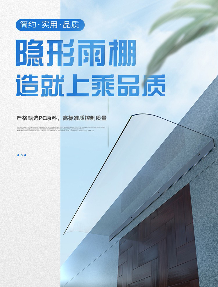 투명 브래킷이없는 캐노피 배플 가정용 발코니 Eaves 창 도어 헤드 플렉시 글래스 햇빛 비길