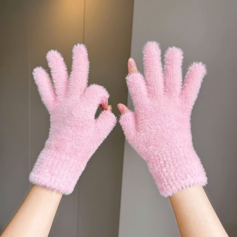 장갑 겨울 투핑거 따뜻한 터치 스크린 기모 반 손가락 귀여운 한국 봉제 냉간 손가락 누출 학생 자전거