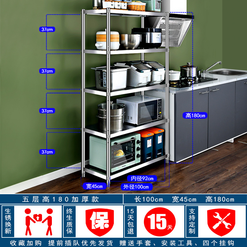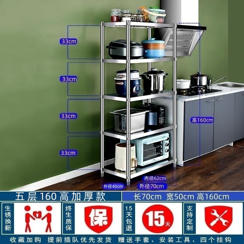 스테인레스 스틸 주방 보관 랙 바닥 다층 저장 랙 가정용 선반 5 층 캐비닛 냄비 선반 전자 레인지 보관