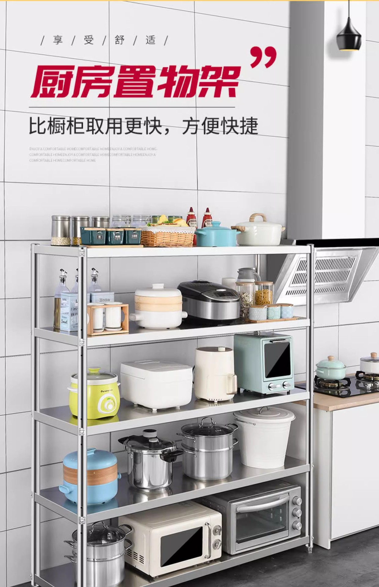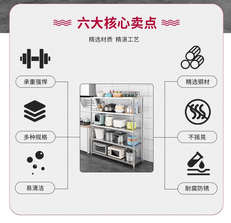 스테인레스 스틸 주방 보관 랙 바닥 다층 저장 랙 가정용 선반 5 층 캐비닛 냄비 선반 전자 레인지 보관스토어 가기