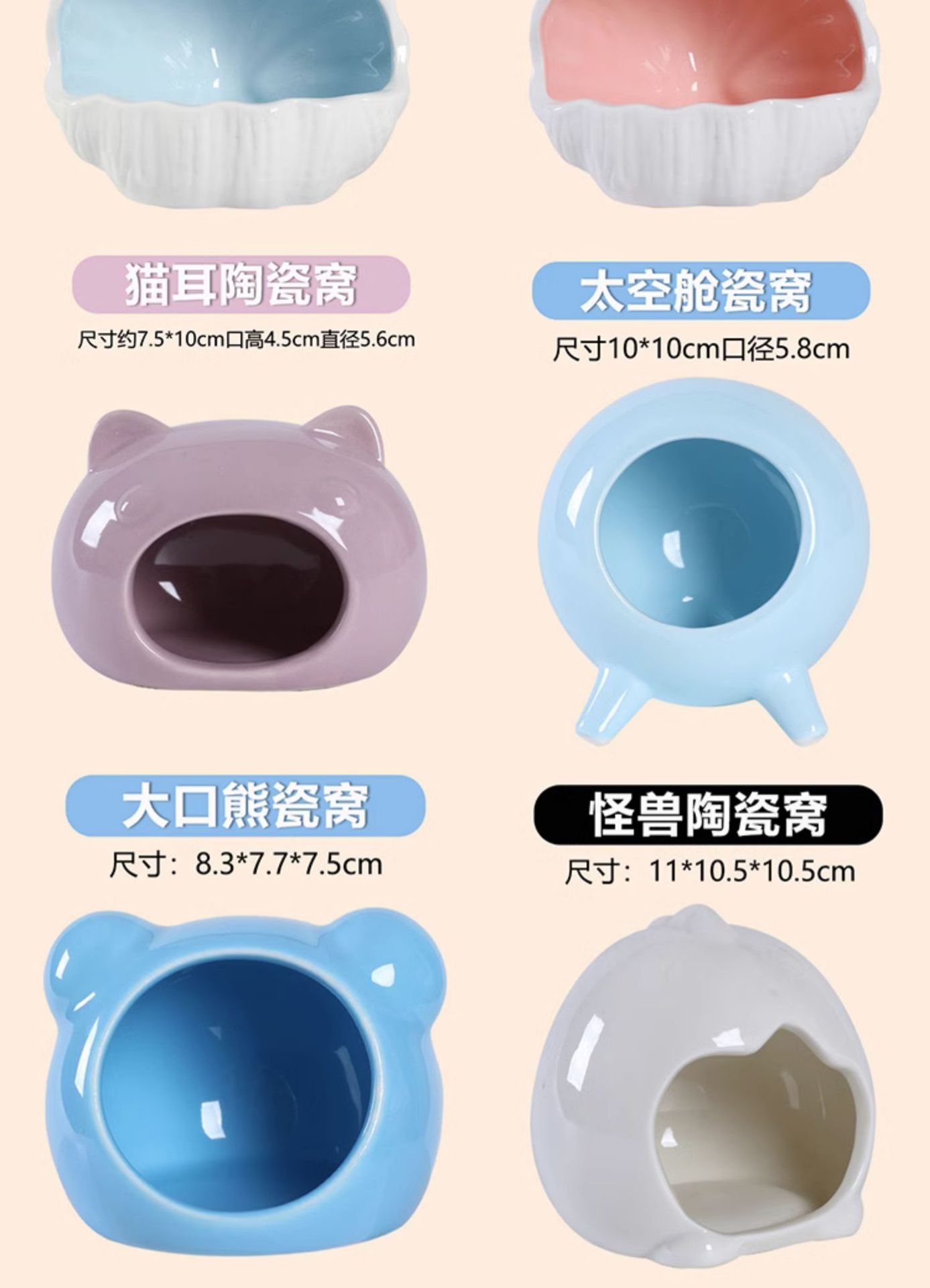햄스터 쉘 도자기 둥지 세라믹 둥지 황금 곰 탈출 작은 집 햄스터 풍경 액세서리 여름 냉각 집스토어 가기
