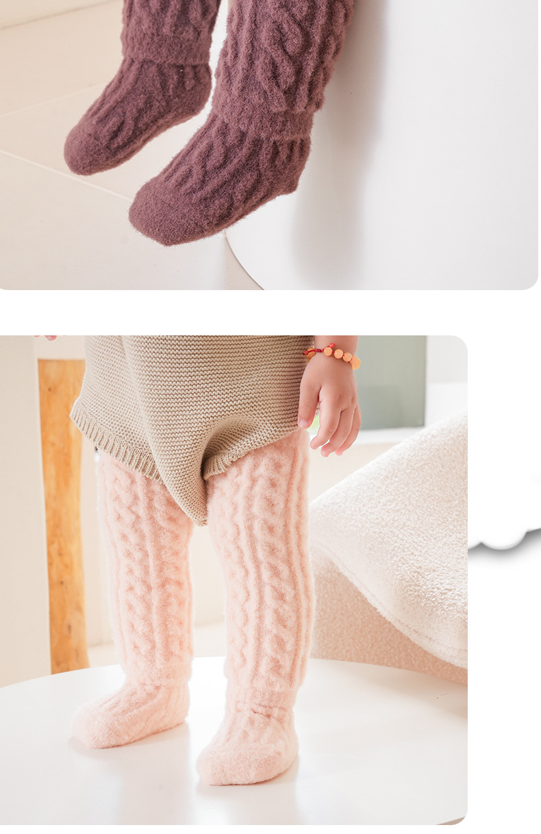 겨울 기모 두꺼운 아기 양말 한국 트위스트 아기 무릎 양말 세트 신생아 크롤링 무릎 양말