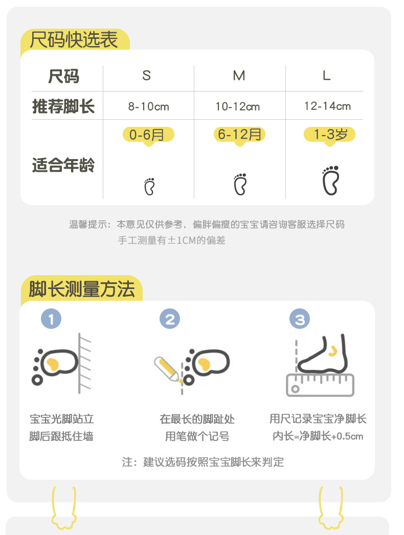 • S (발 길이 10-12cm에 적합) 6-12개월