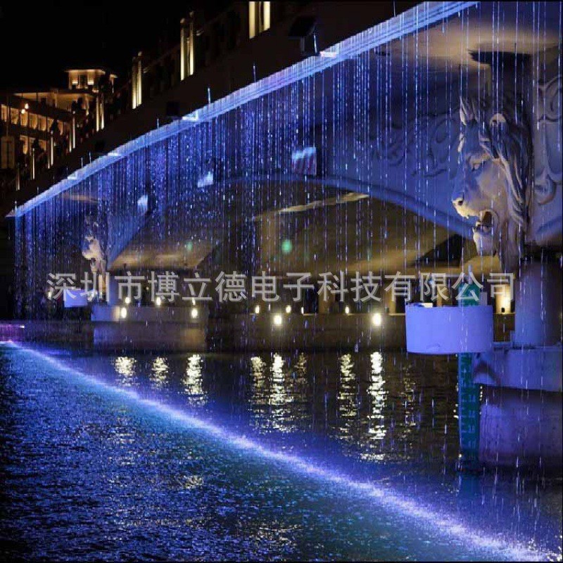 대형 실내외 장식 디지털 워터 커튼, 워터 스크린, 워터 커튼월, 직사각형 및 원형 조명, 그래픽 및 텍스트가 포함된 폭포
