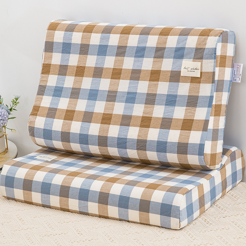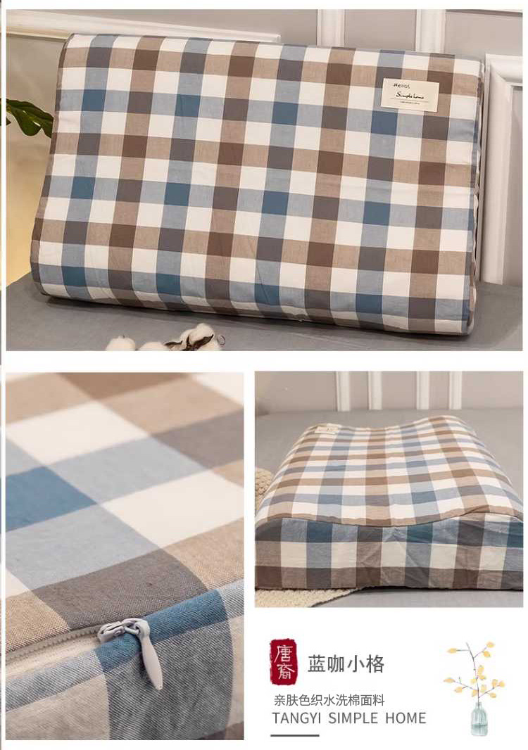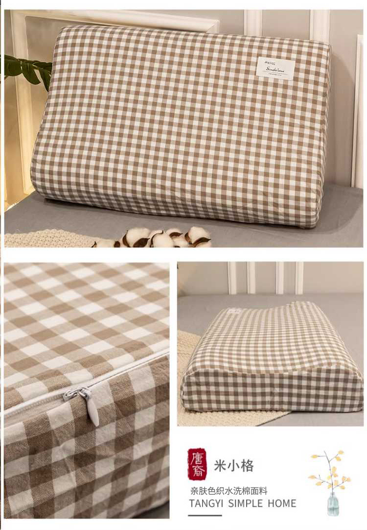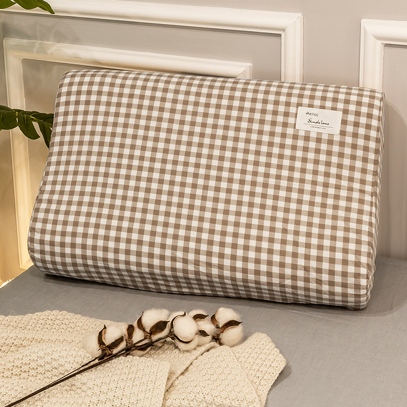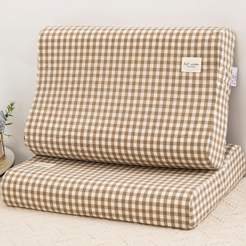 • 라이트 커피 작은 격자 [면 100% 라텍스 베개 커버] 한 쌍