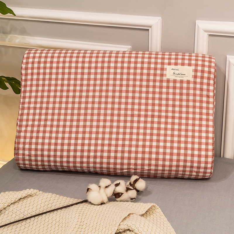 • 스몰 핑크 체크 [면 100% 라텍스 베갯잇] 싱글 팩