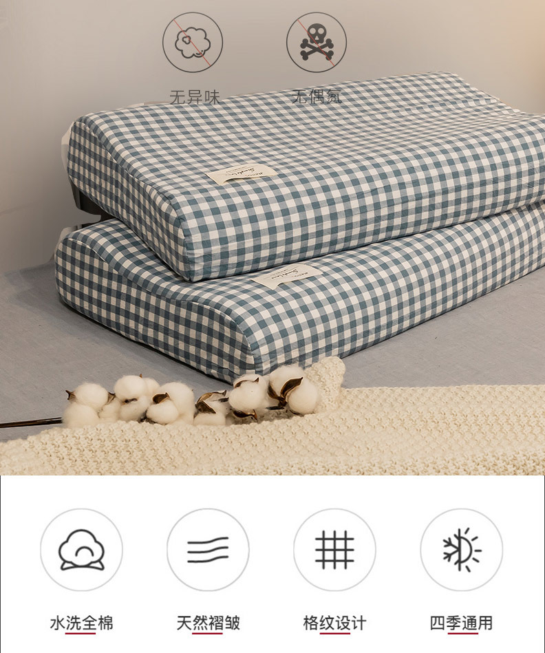 • Xiaobai 그리드 [면 100% 라텍스 베갯잇] 싱글 팩
