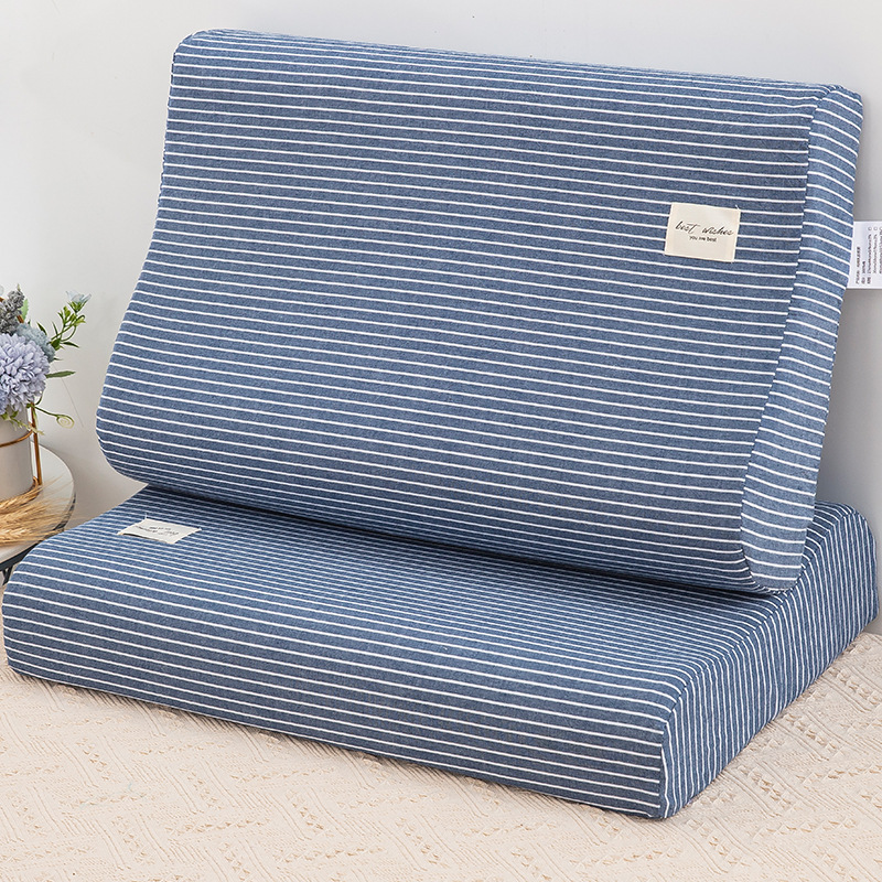 • 파란색 얇은 스트립 [면 100% 라텍스 베갯잇] 한 쌍