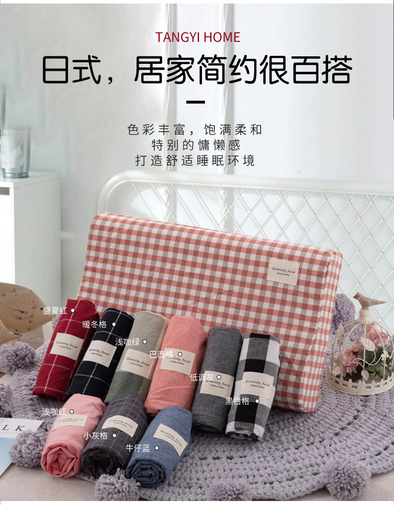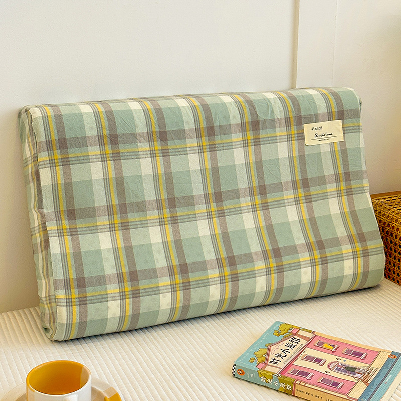 • 컬러풀한 체크무늬 [면 100% 라텍스 베갯잇] 싱글팩
