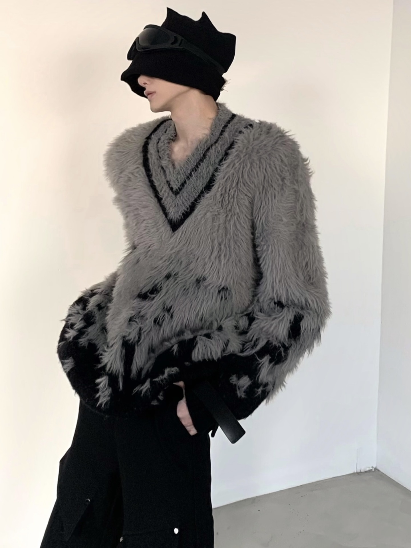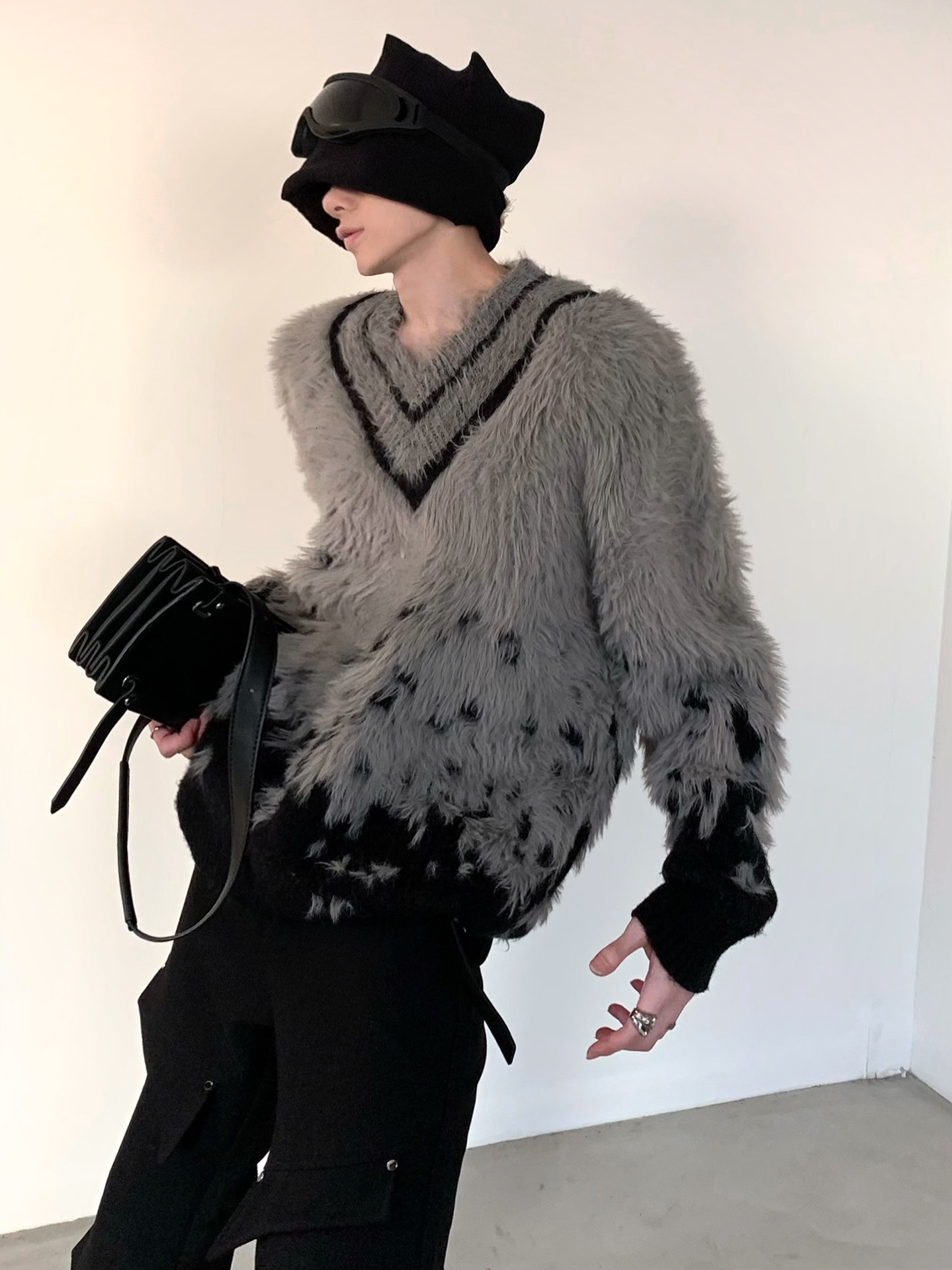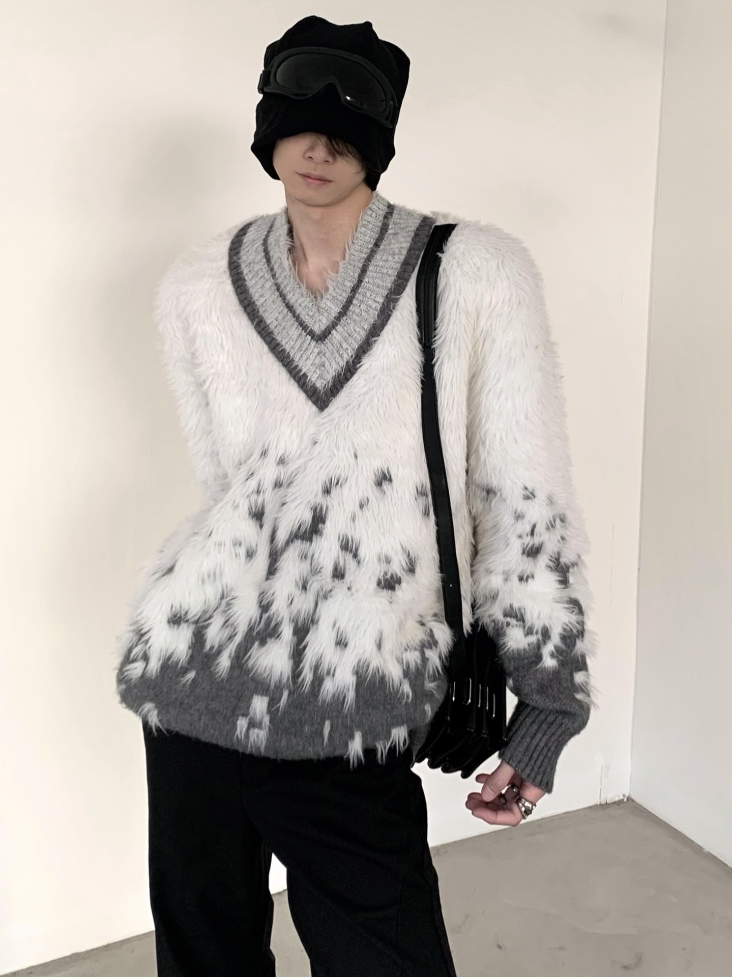 대외 무역 가을과 겨울 새로운 분위기 V-Neck 그라디언트 크리스마스 분위기 스웨터 재킷 남자의 유행 모조 밍크 울 스웨터스토어 가기