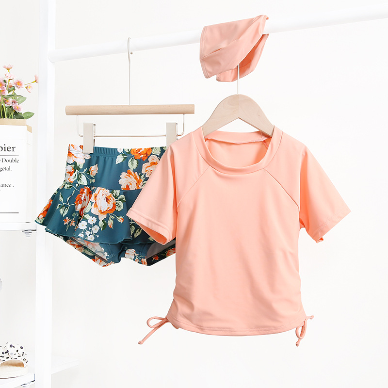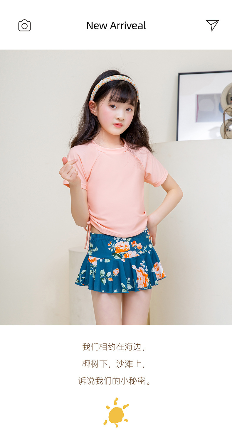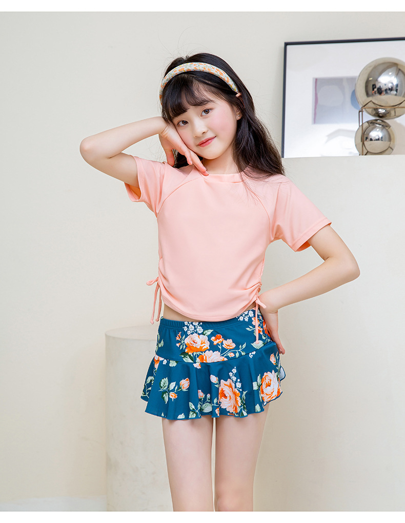 어린이 수영복 2022 큰 어린이 수영복 소녀 분할 짧은 소매 플랫 앵글 학생 온천 수영복 헤어 세대스토어 가기