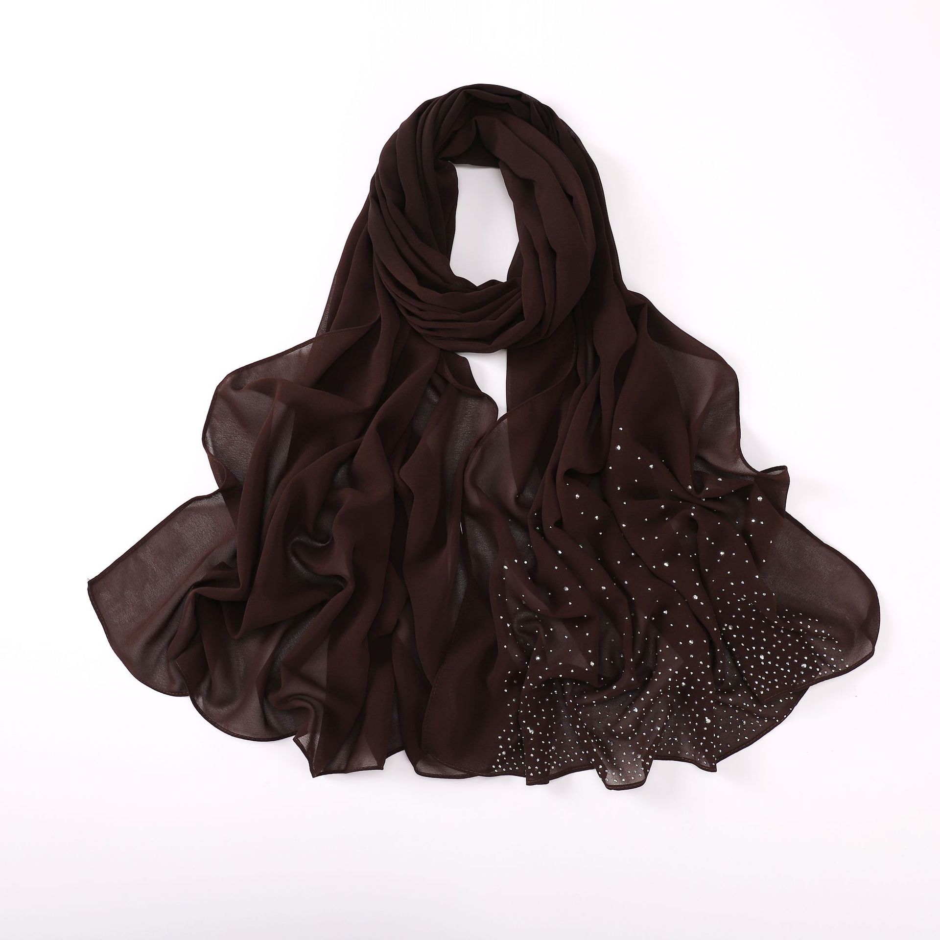 국경 간 새로운 싱글 헤드 스타 라인 스톤 쉬폰 스카프 Hui Malaysia 스카프 중동 여자 히잡