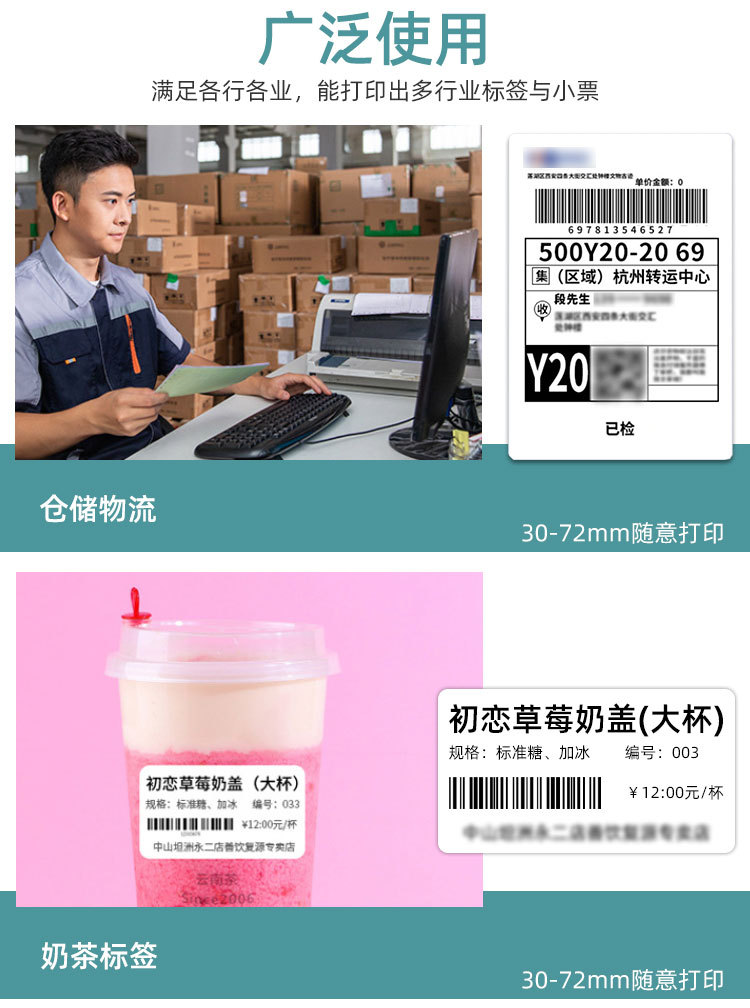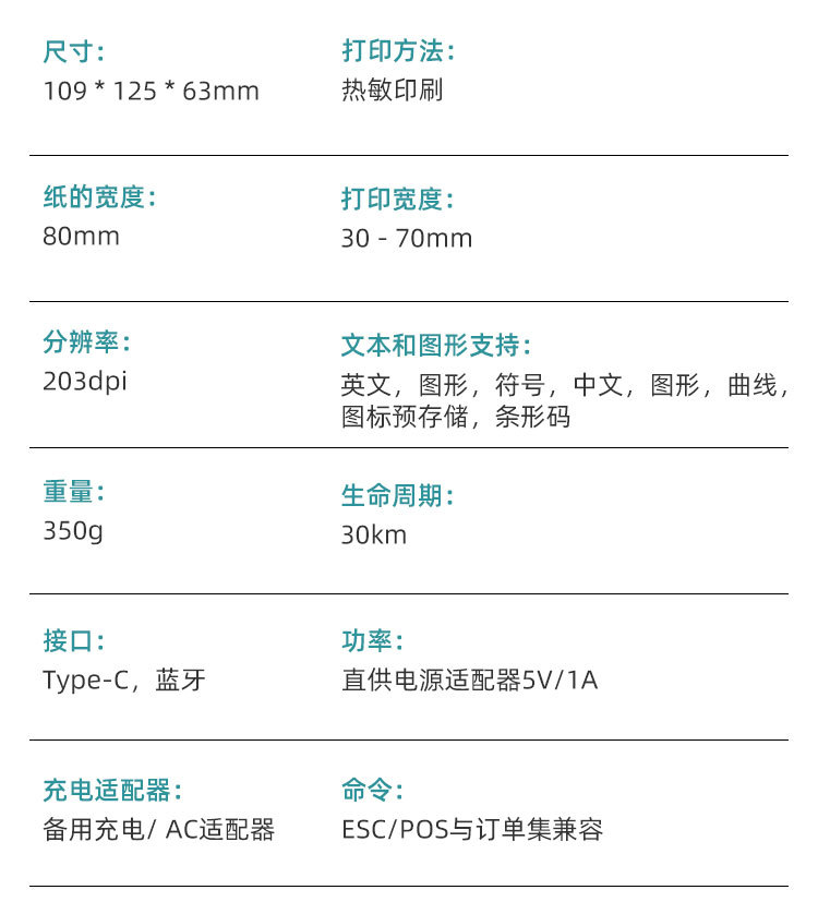 - 支持蓝牙功能,支持Android,iOS和Windows,方便您无线打印设备中的数据