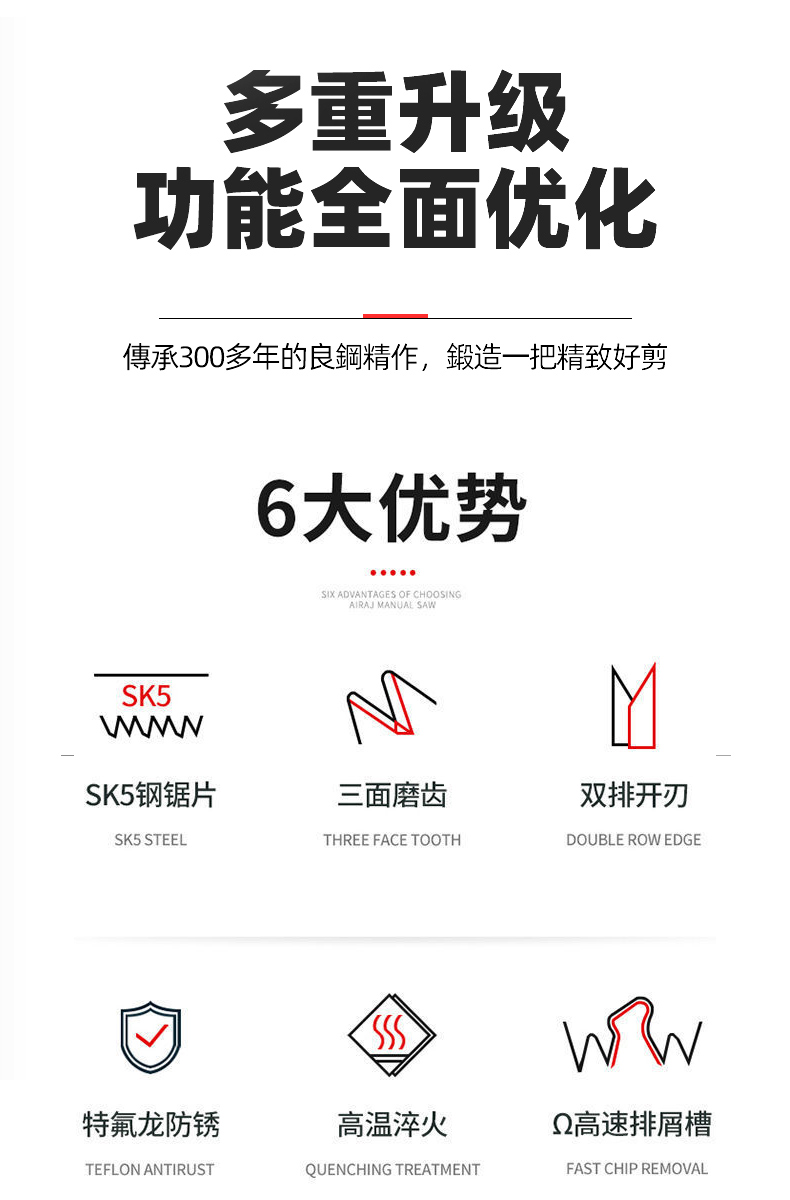 • U자형 톱은 4개 섹션으로 두꺼워졌습니다. 6m 두꺼운 패키지와 함께 제공됩니다(무료 예비 톱날)