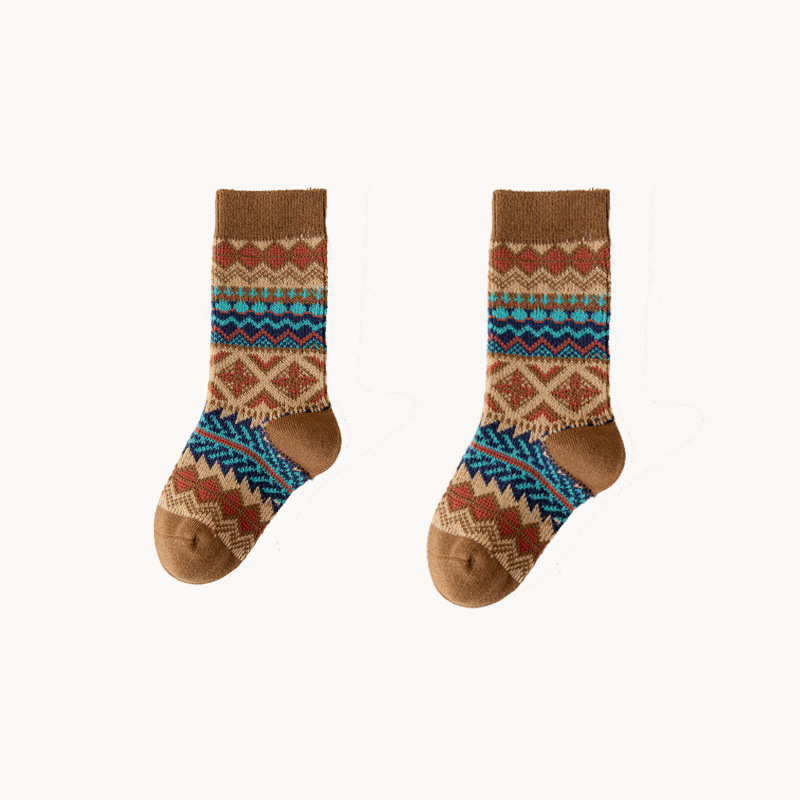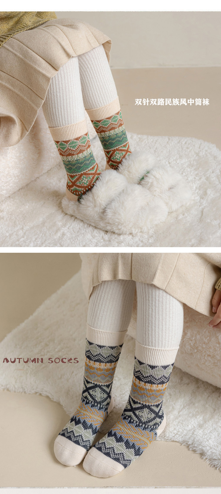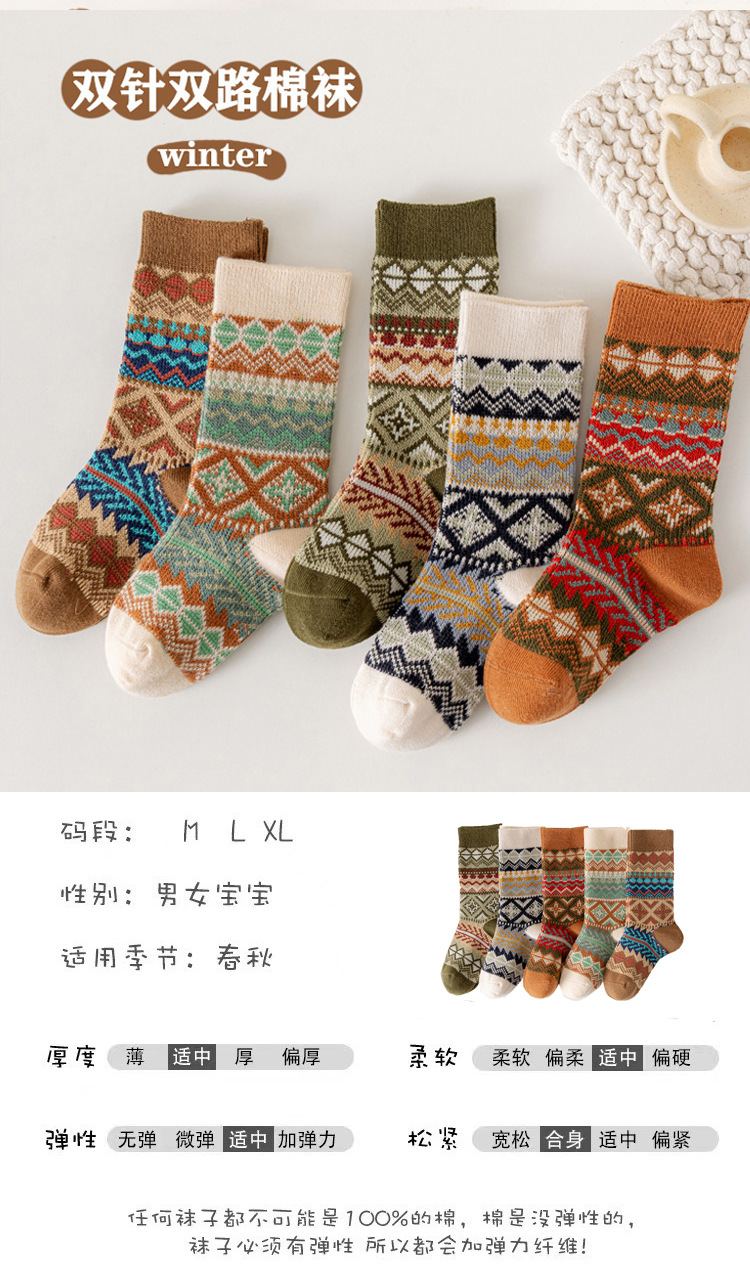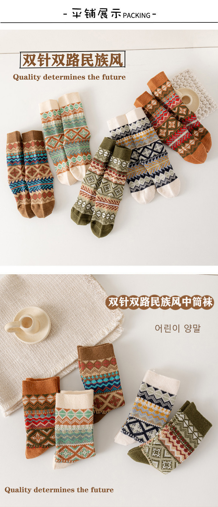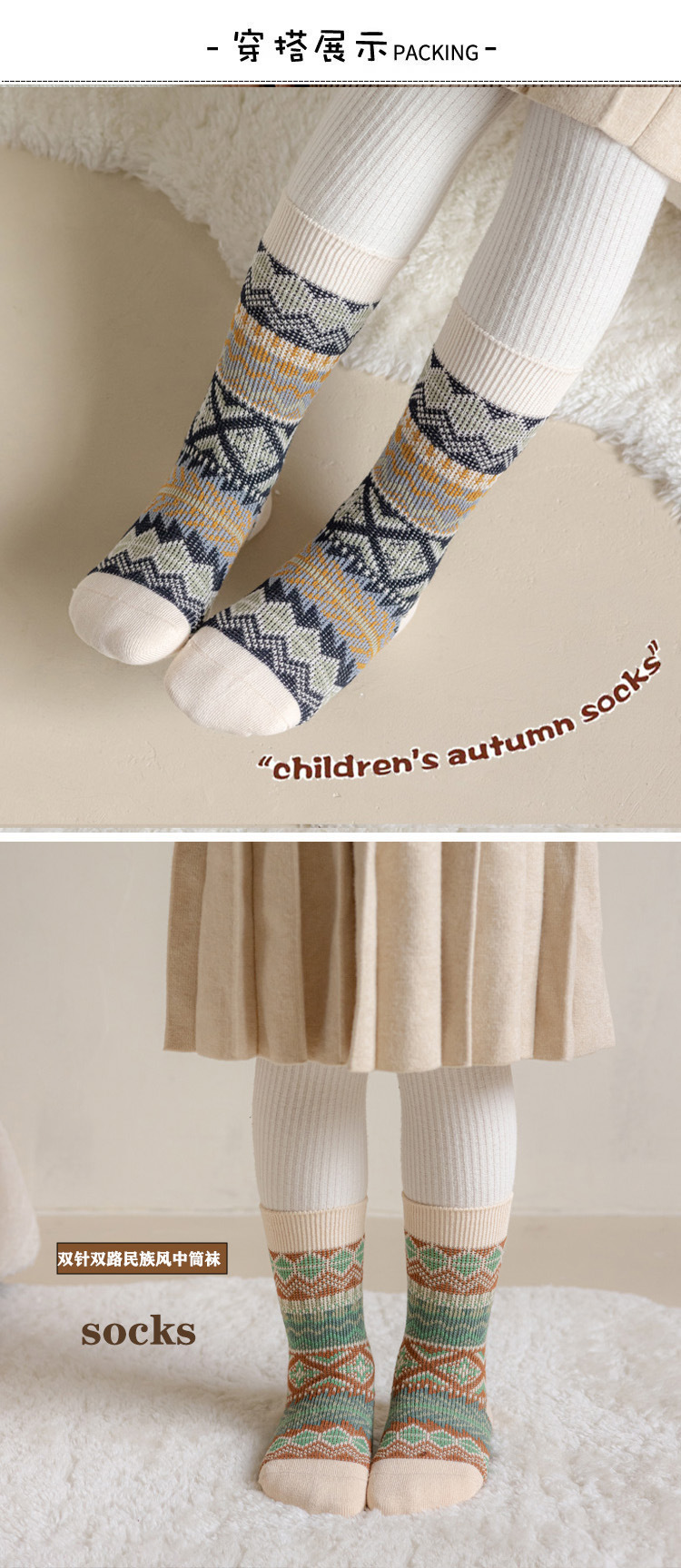 어린이 양말 도매 가을과 겨울 새로운 더블 바늘 더블 도로 복고풍 민족 바람 튜브 양말 소년면 양말 소녀 양말스토어 가기