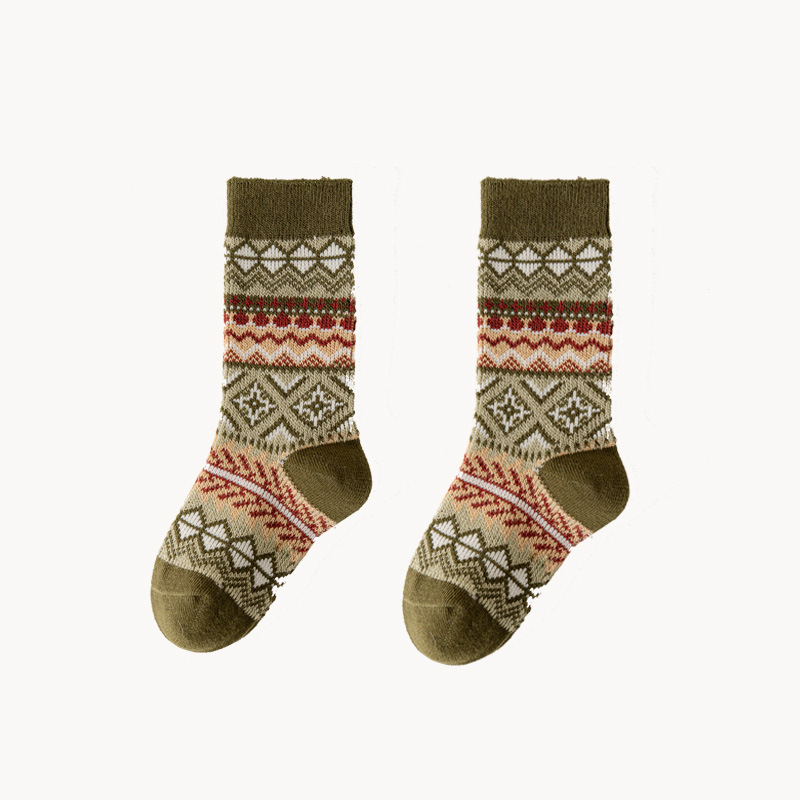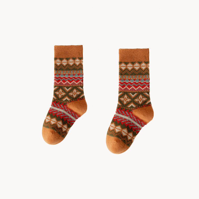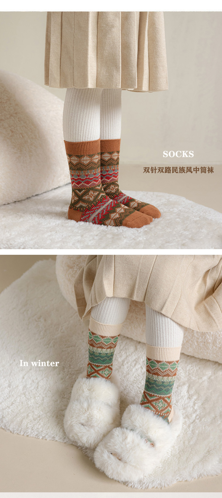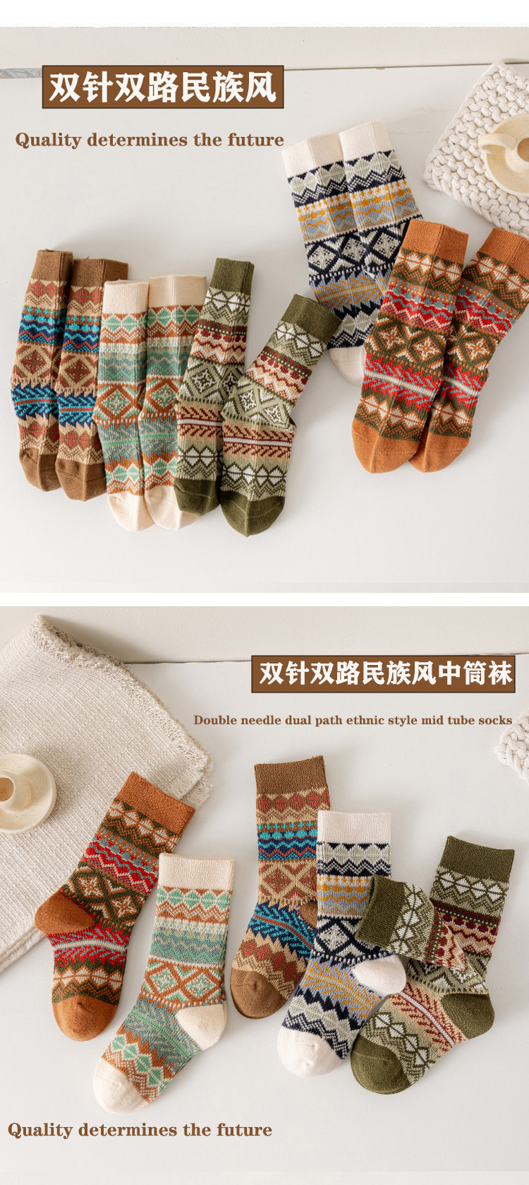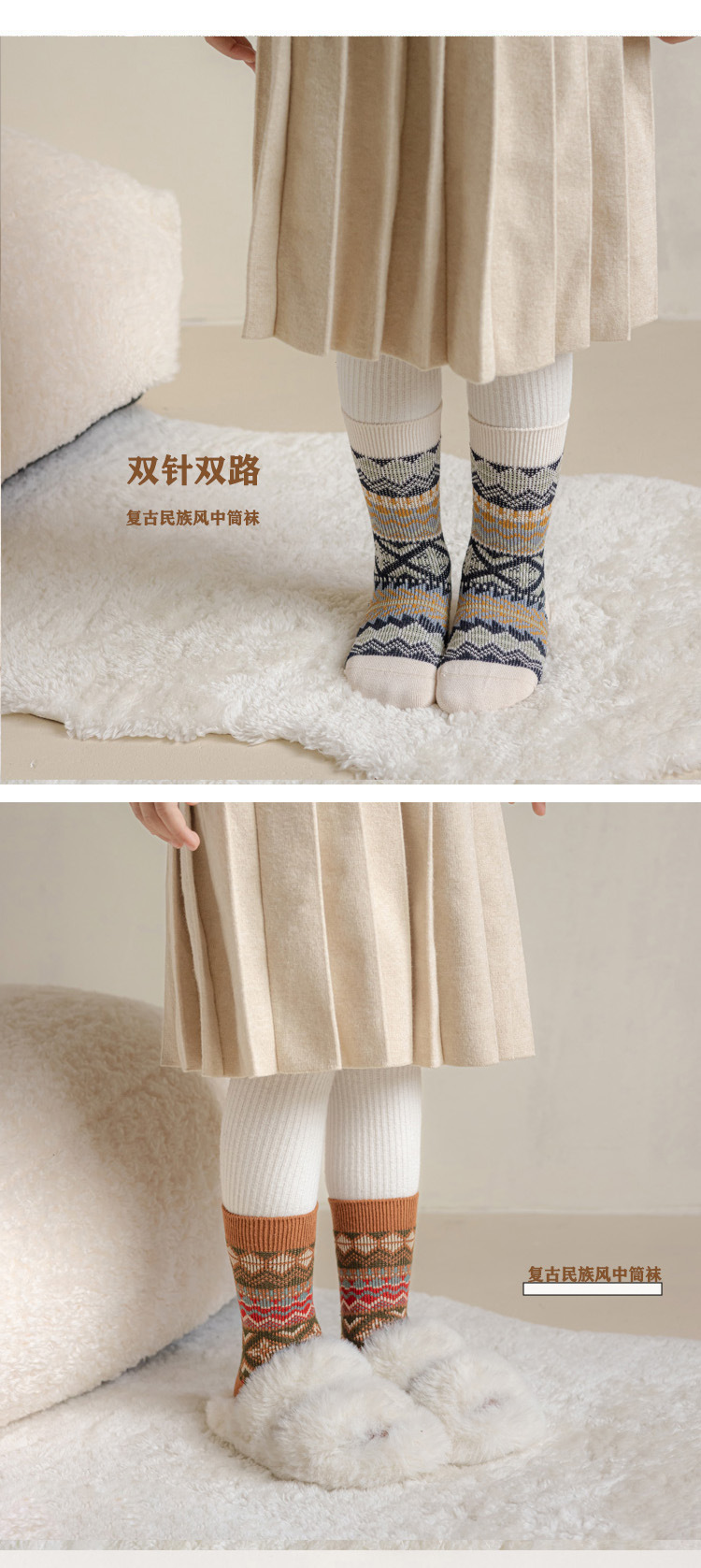 어린이 양말 도매 가을과 겨울 새로운 더블 바늘 더블 도로 복고풍 민족 바람 튜브 양말 소년면 양말 소녀 양말스토어 가기