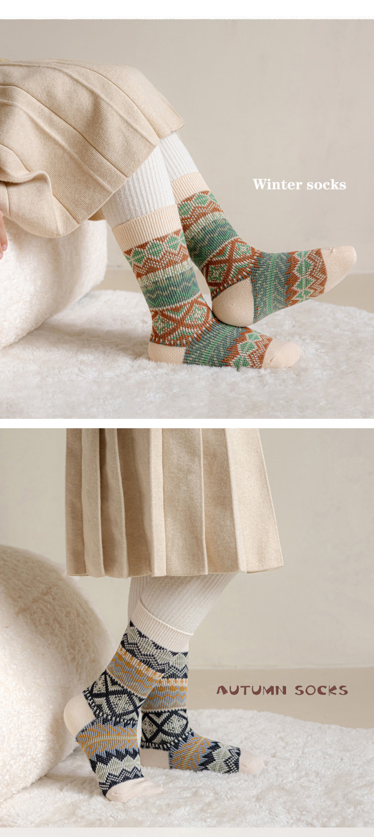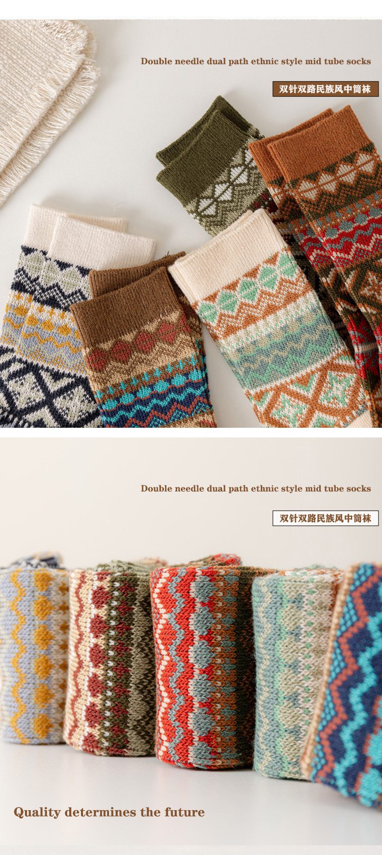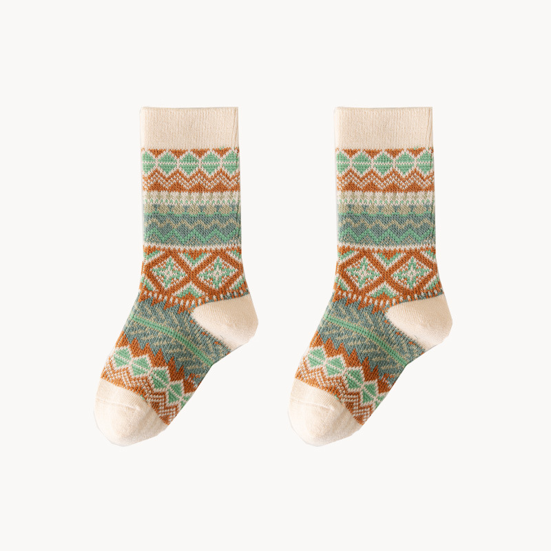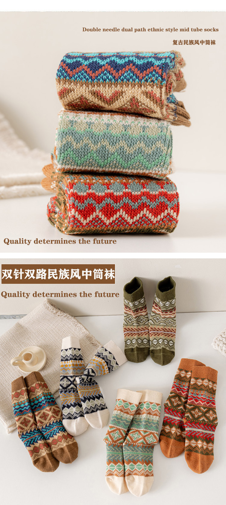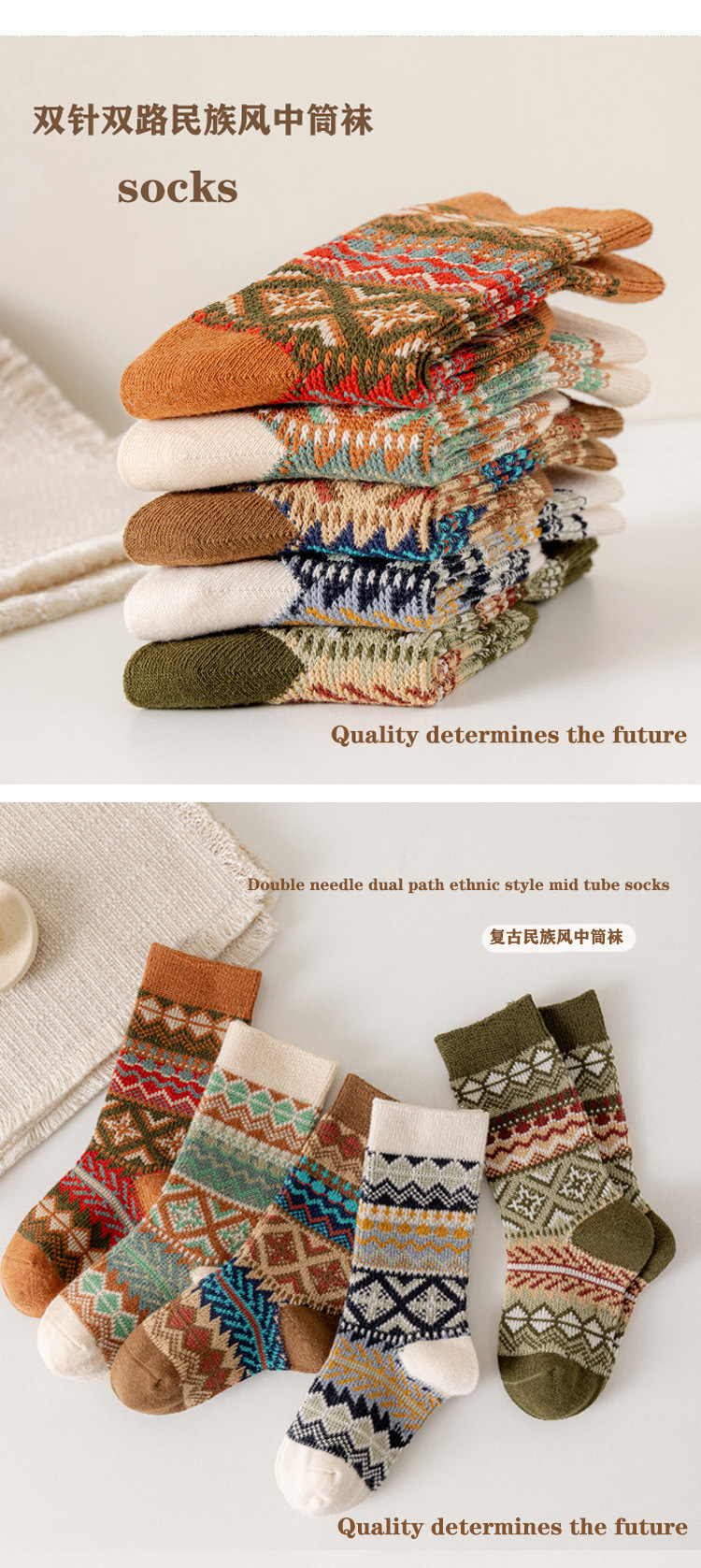 어린이 양말 도매 가을과 겨울 새로운 더블 바늘 더블 도로 복고풍 민족 바람 튜브 양말 소년면 양말 소녀 양말스토어 가기