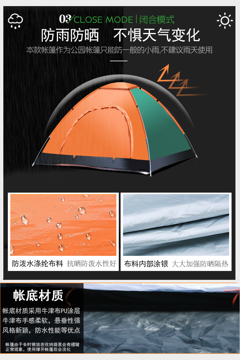 텐트 야외 완전 자동 캠핑 2 인칭 야외 두꺼운 안티 모기 자외선 차단제 빠른 오프닝 햇빛 따뜻한 텐트스토어 가기