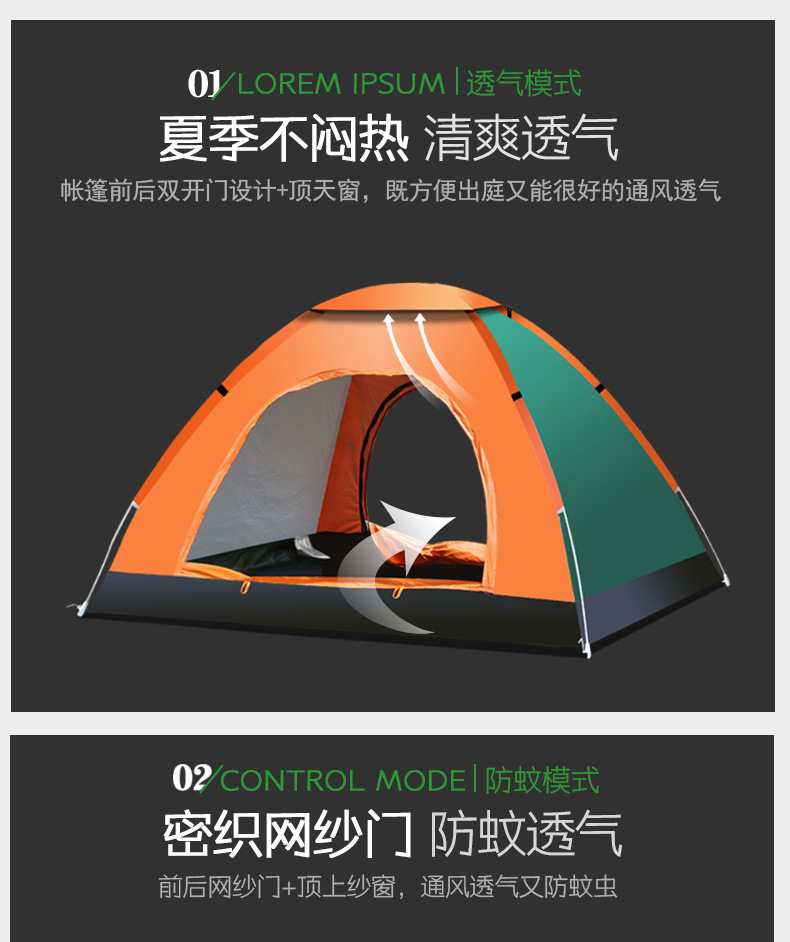 텐트 야외 완전 자동 캠핑 2 인칭 야외 두꺼운 안티 모기 자외선 차단제 빠른 오프닝 햇빛 따뜻한 텐트