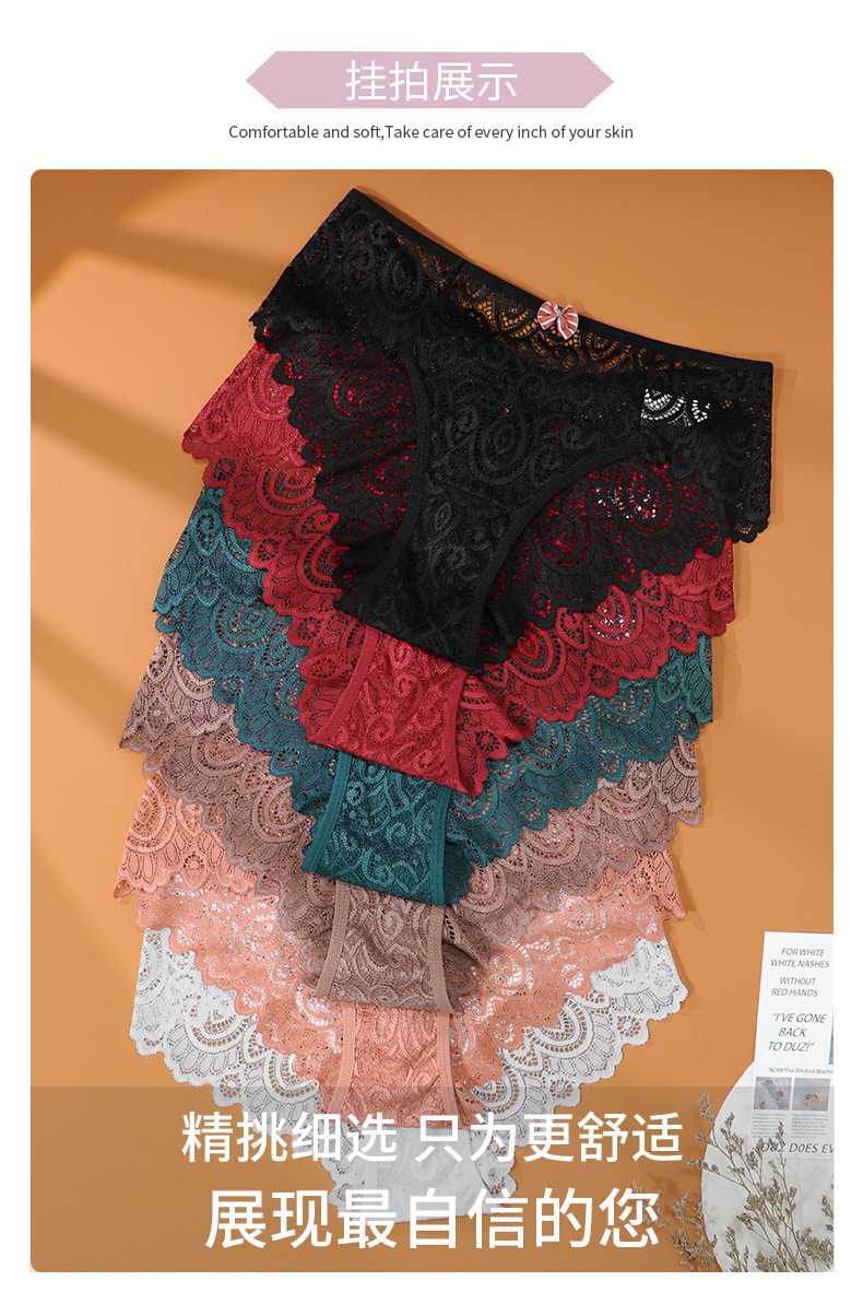 아마존 유럽과 미국 섹시한 여성 브리프 워터 드롭 할로우 섹시한 레이스 속옷 하프 힙합 비키니 반바지스토어 가기