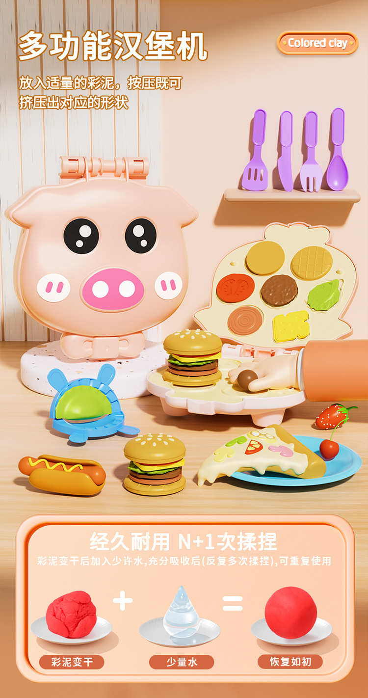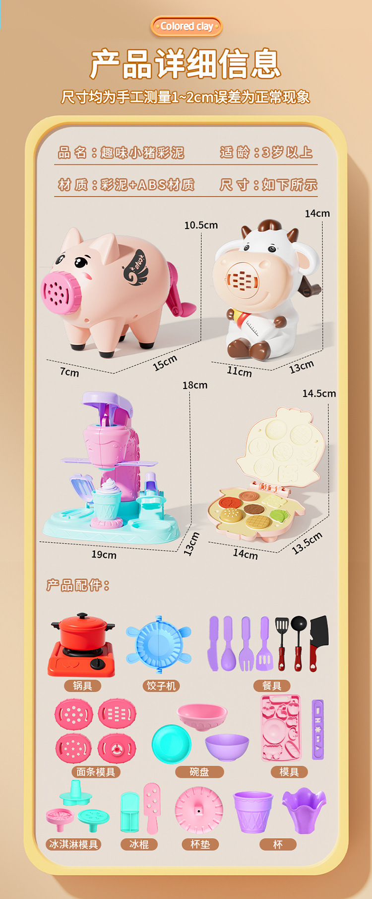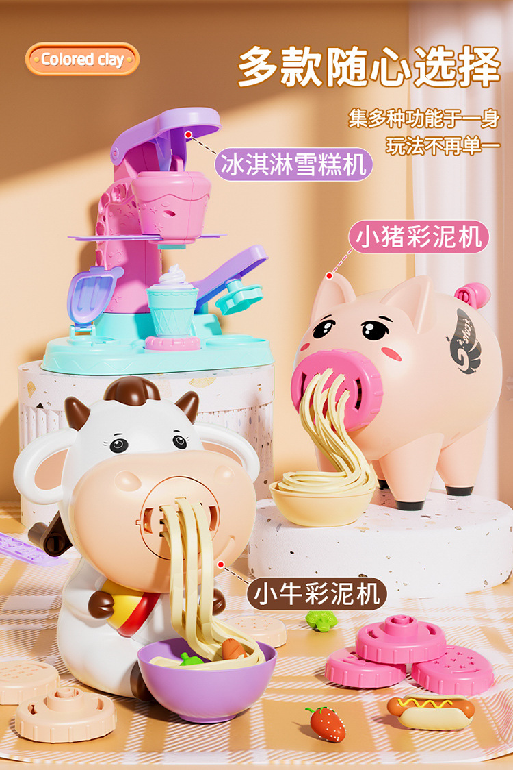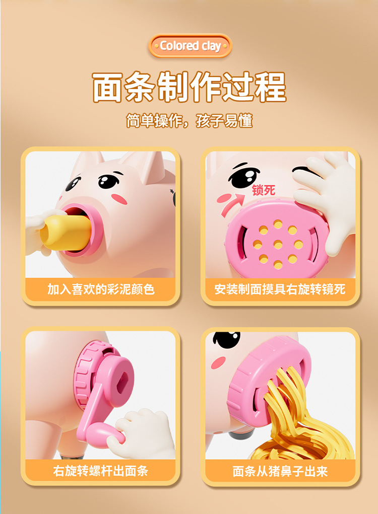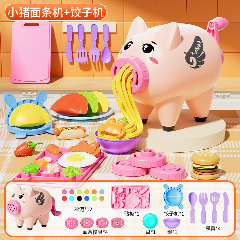 Plasticine 돼지 국수 기계 장난감 컬러 점토 세트 어린이 소년과 소녀 점토 빛 점토 도구스토어 가기