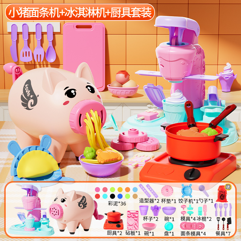 Plasticine 돼지 국수 기계 장난감 컬러 점토 세트 어린이 소년과 소녀 점토 빛 점토 도구