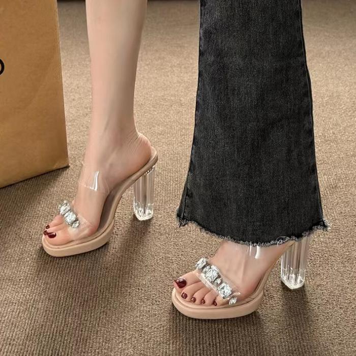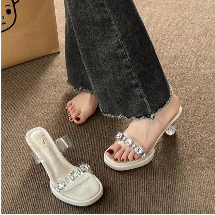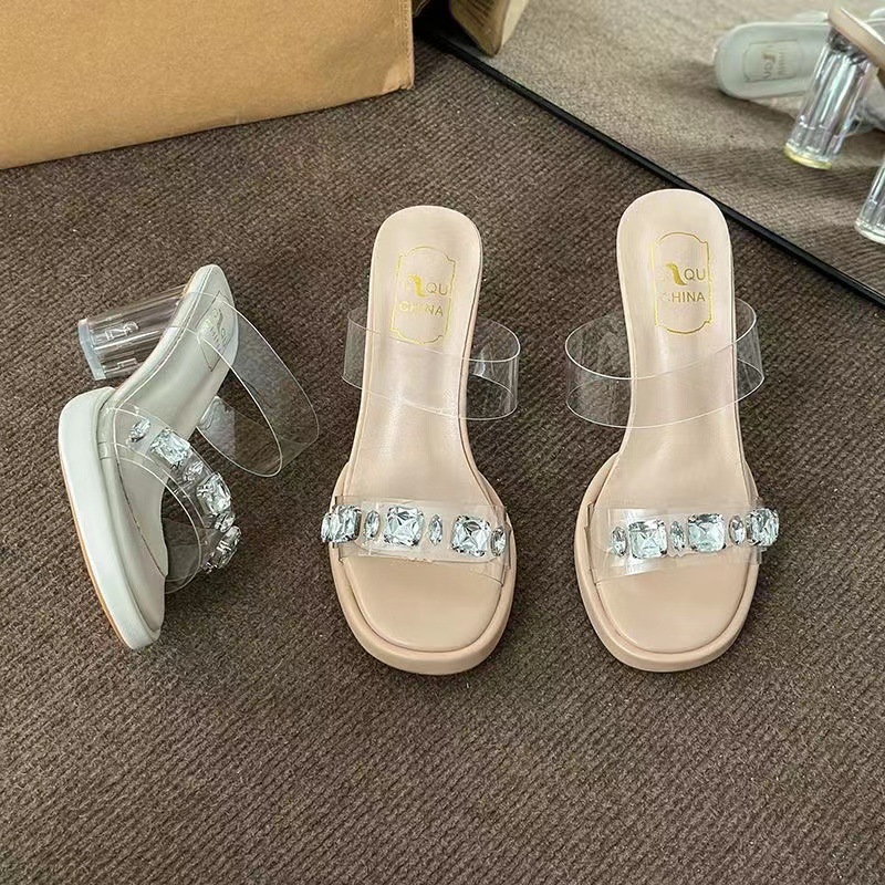 유럽과 미국 대외 무역 7cm 하이힐 착용 2024 새로운 프랑스 투명 두꺼운 힐 샌들 플러스 사이즈 슬리퍼 도매스토어 가기