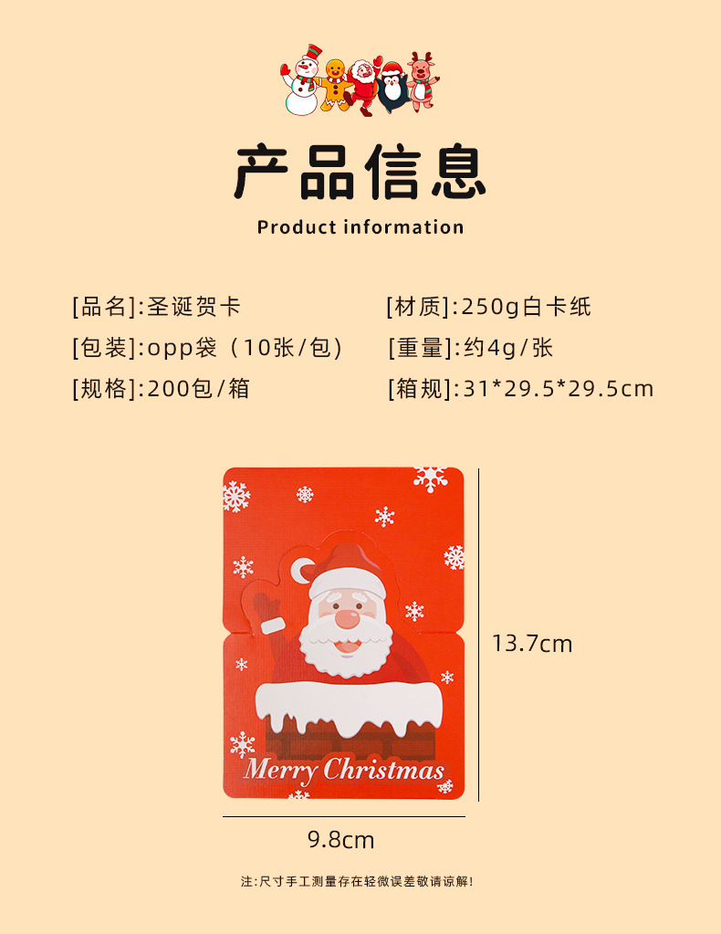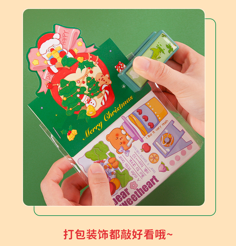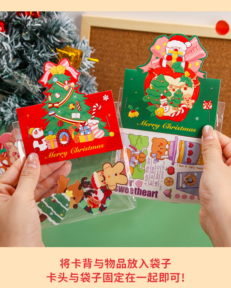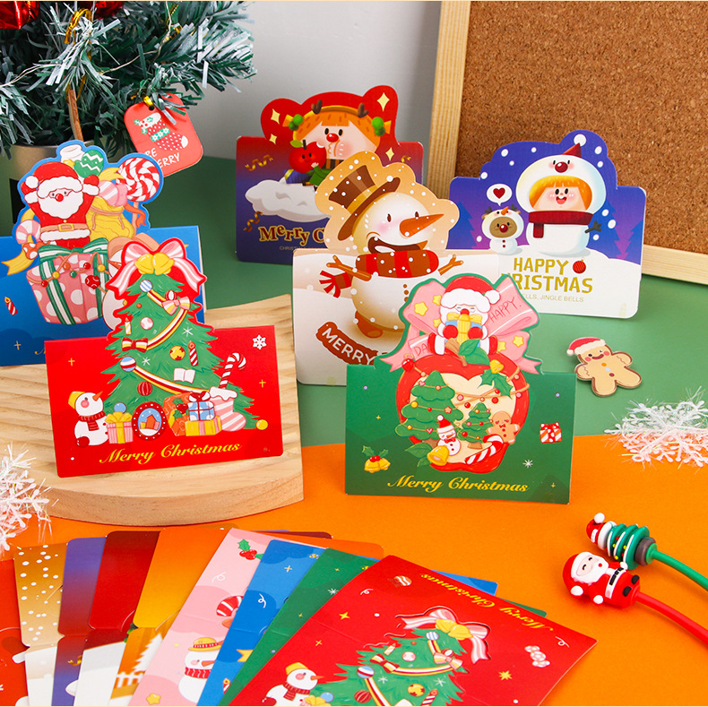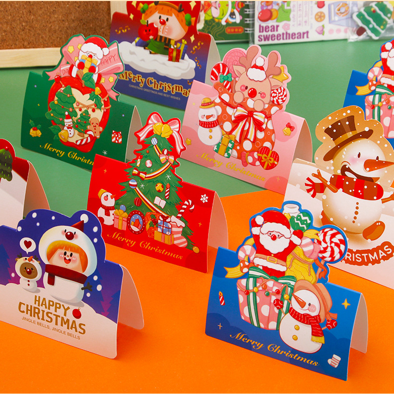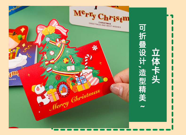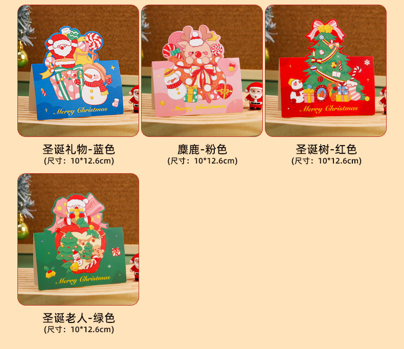 만화 귀여운 크리스마스 카드 헤드 크리스마스 장식 3 차원 두꺼운 작은 카드 선물 포장 재료 도매스토어 가기