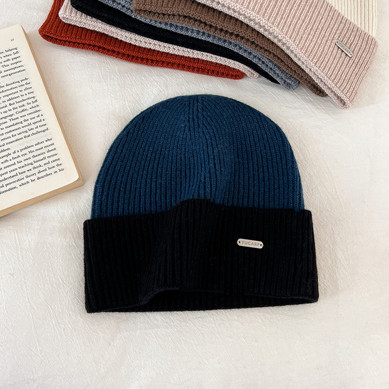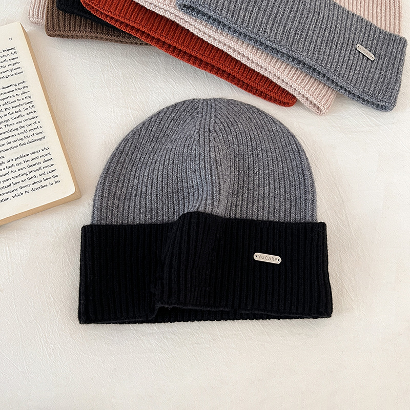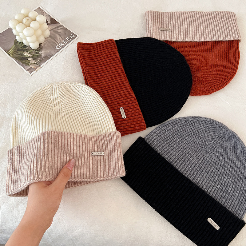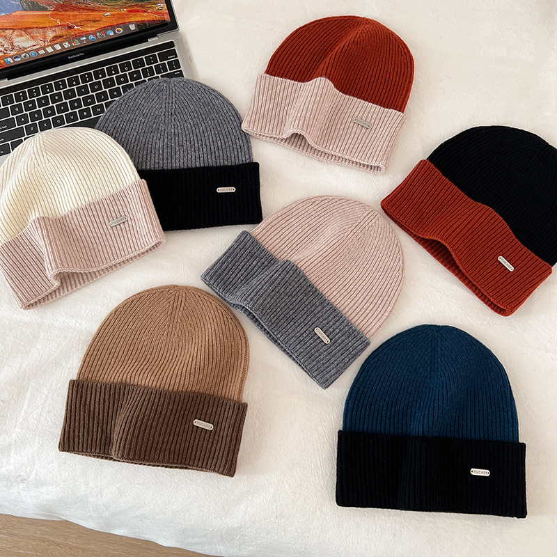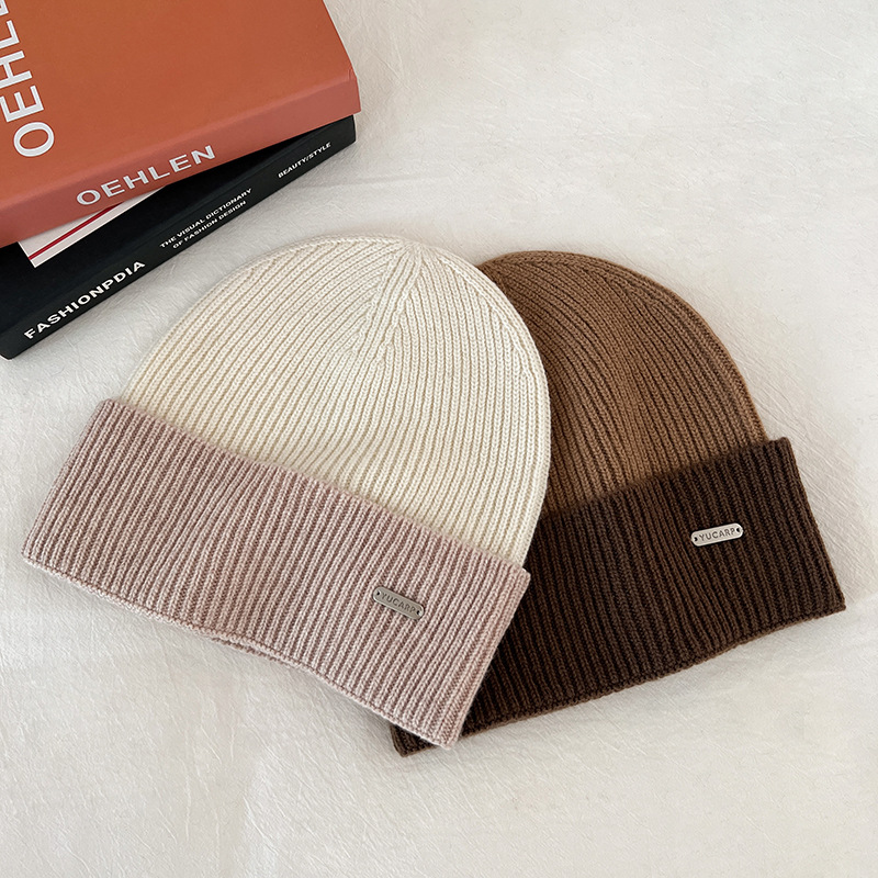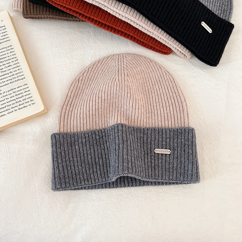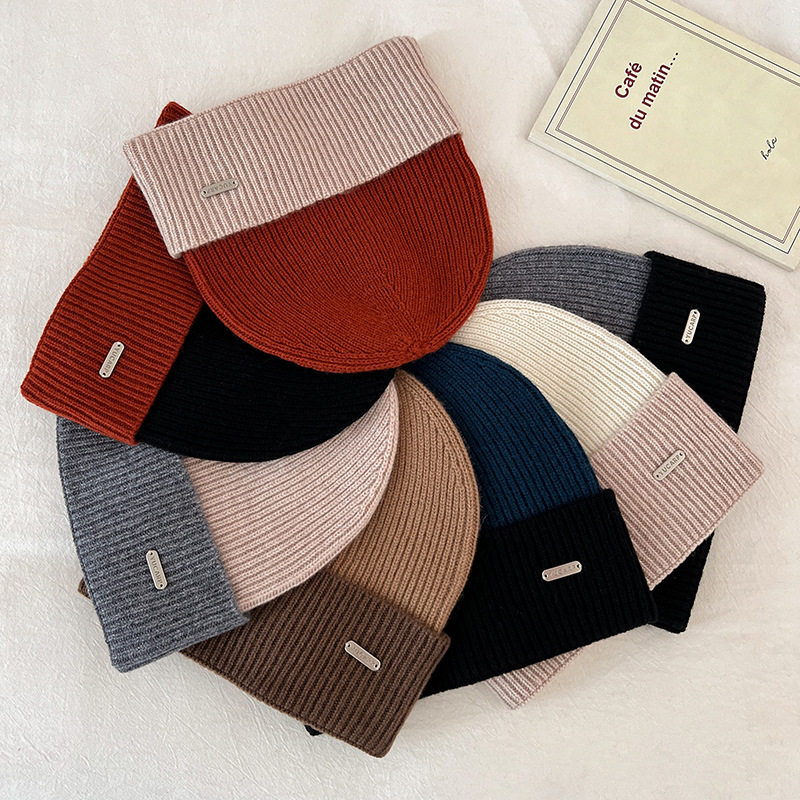 2024 여성을위한 새로운 100 울 모자 따뜻한 가을과 겨울 두꺼운 올 매치 솔리드 컬러 니트 간단한 겨울 울 모자