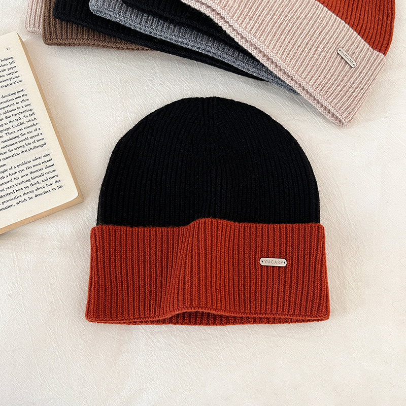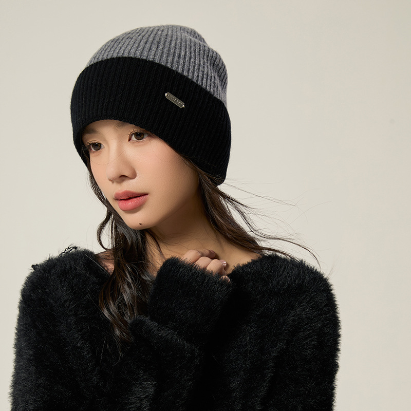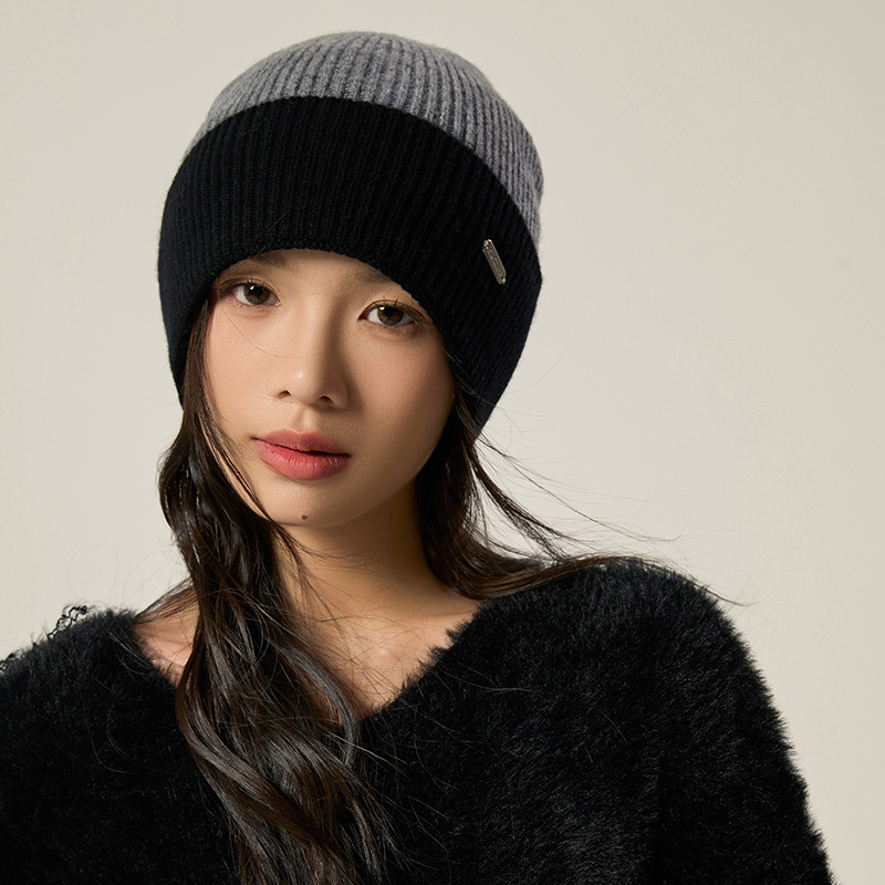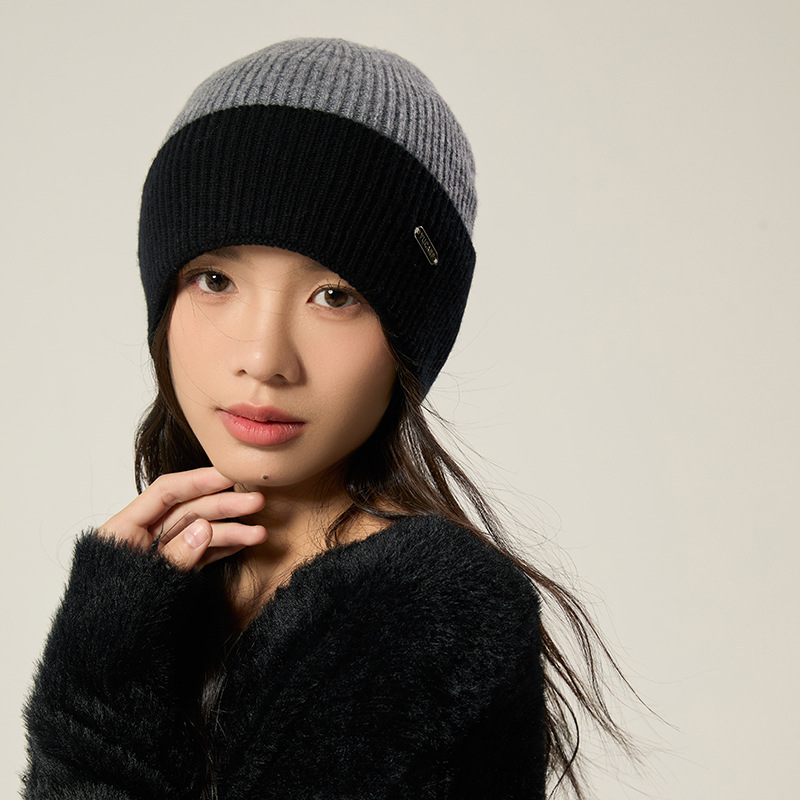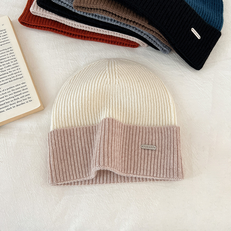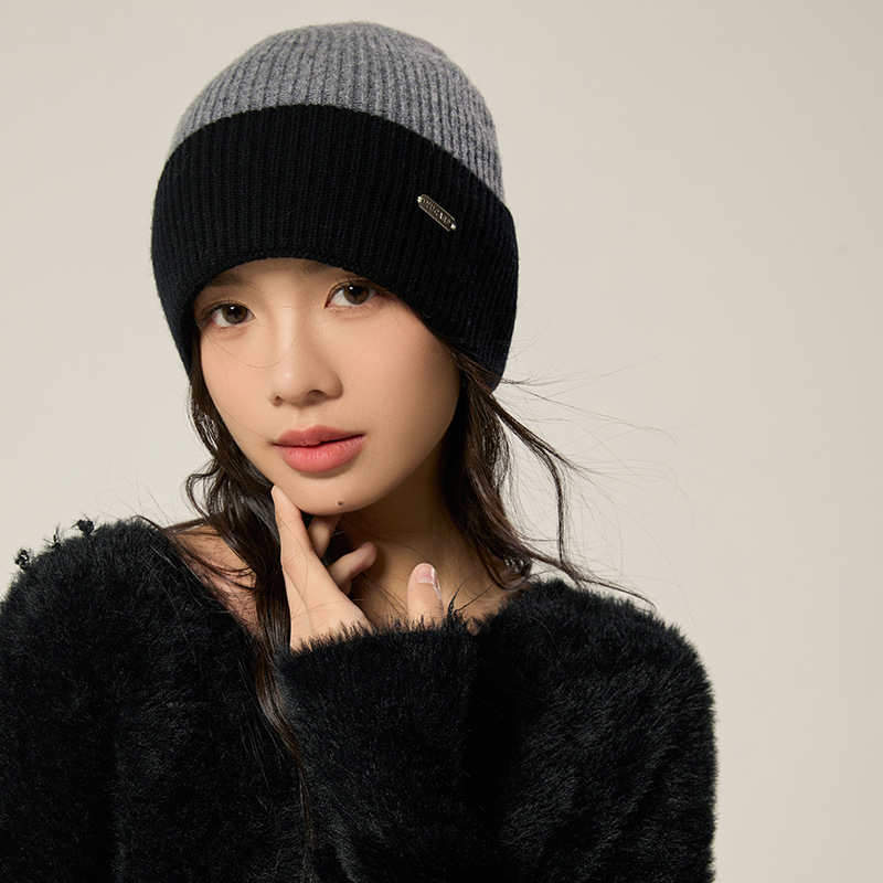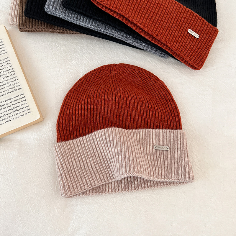 2024 여성을위한 새로운 100 울 모자 따뜻한 가을과 겨울 두꺼운 올 매치 솔리드 컬러 니트 간단한 겨울 울 모자