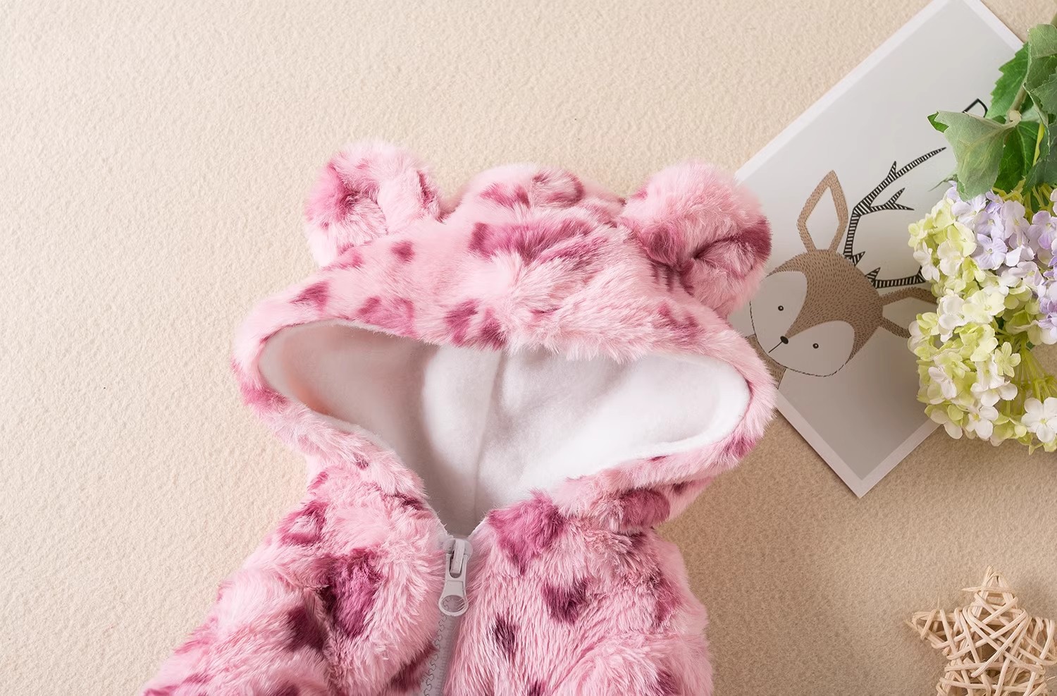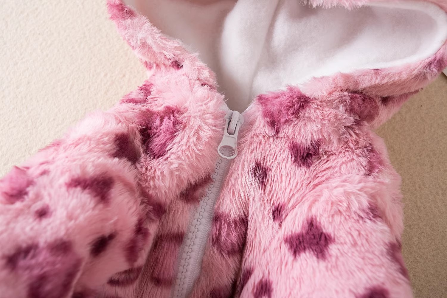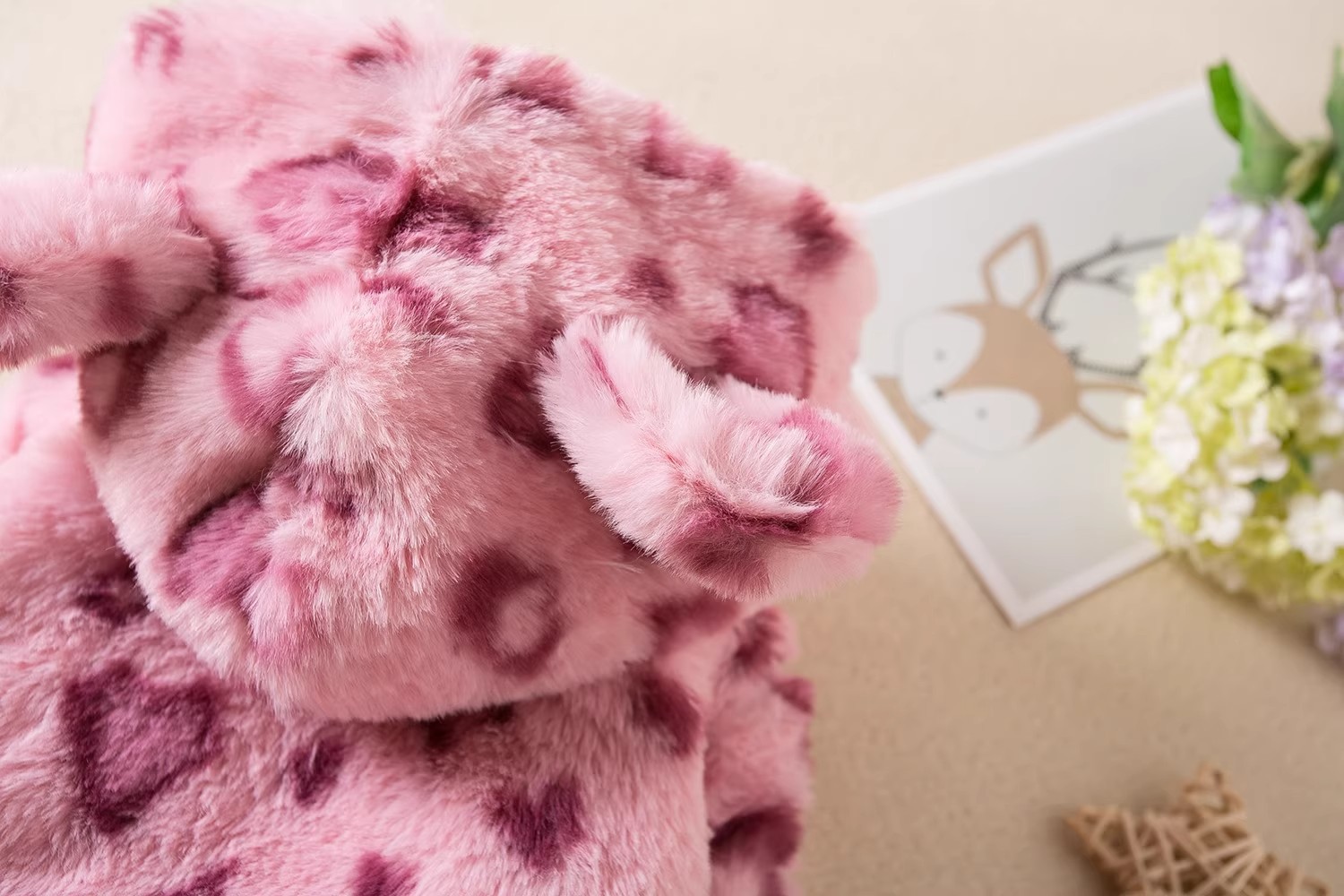 • 후드 핑크 플러시 모피