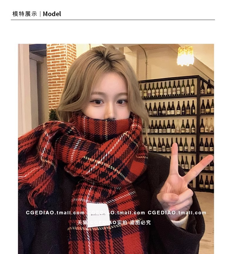 한국 스타일 스카프 여자 겨울 2024 신년 분위기 붉은 따뜻한 올매치 하이 엔드 격자 무늬 스카프 패션스토어 가기