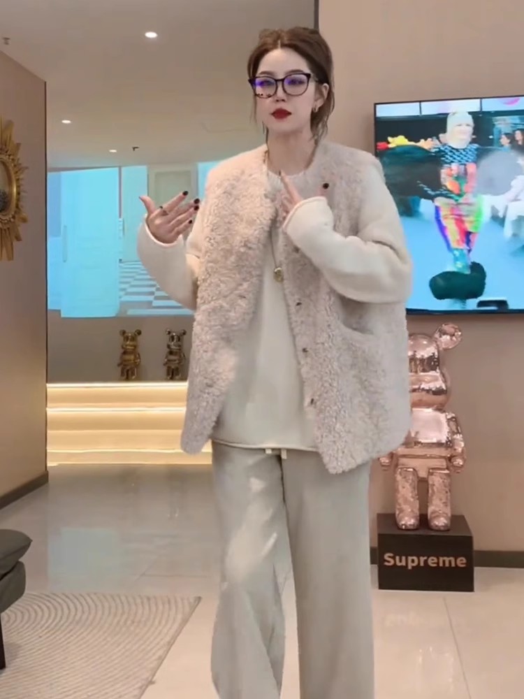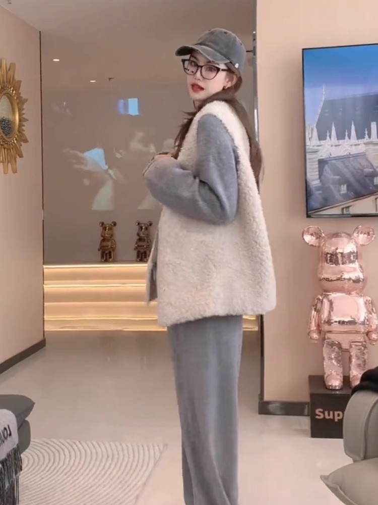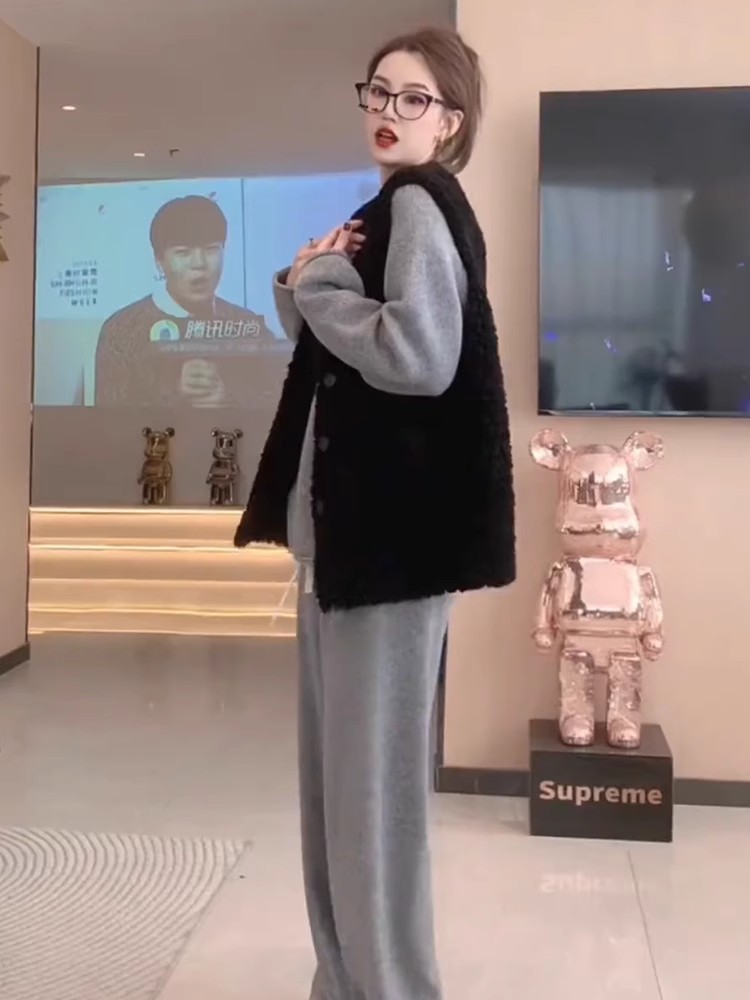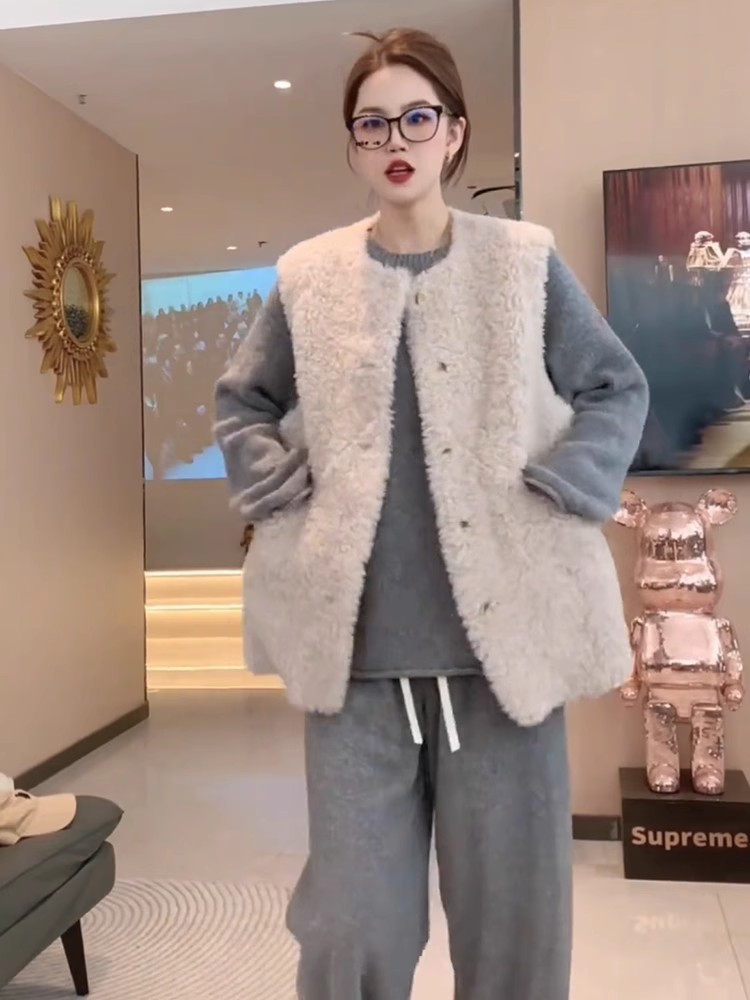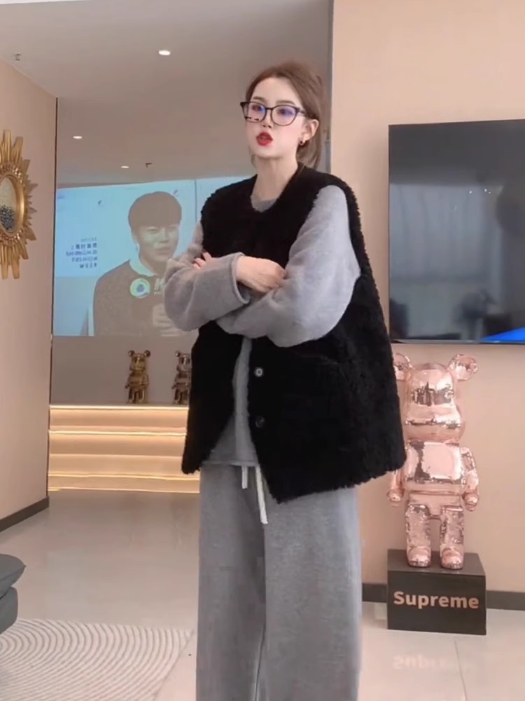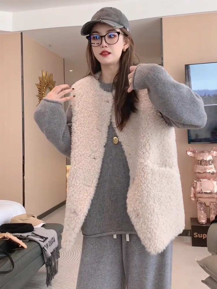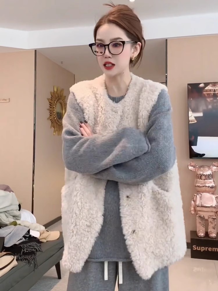 양모 조끼 여성의 2024 가을과 겨울 새로운 패션 느슨한 모피 패션 따뜻한 양복 조끼스토어 가기