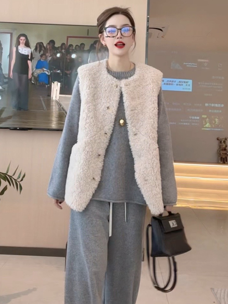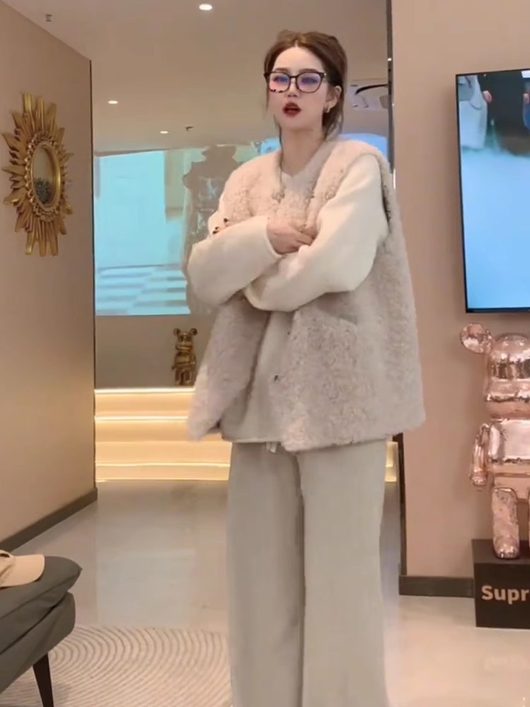 양모 조끼 여성의 2024 가을과 겨울 새로운 패션 느슨한 모피 패션 따뜻한 양복 조끼