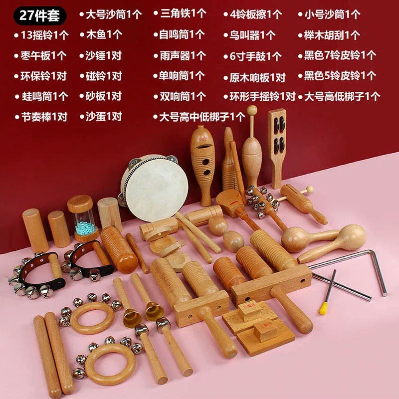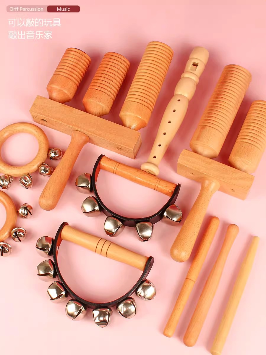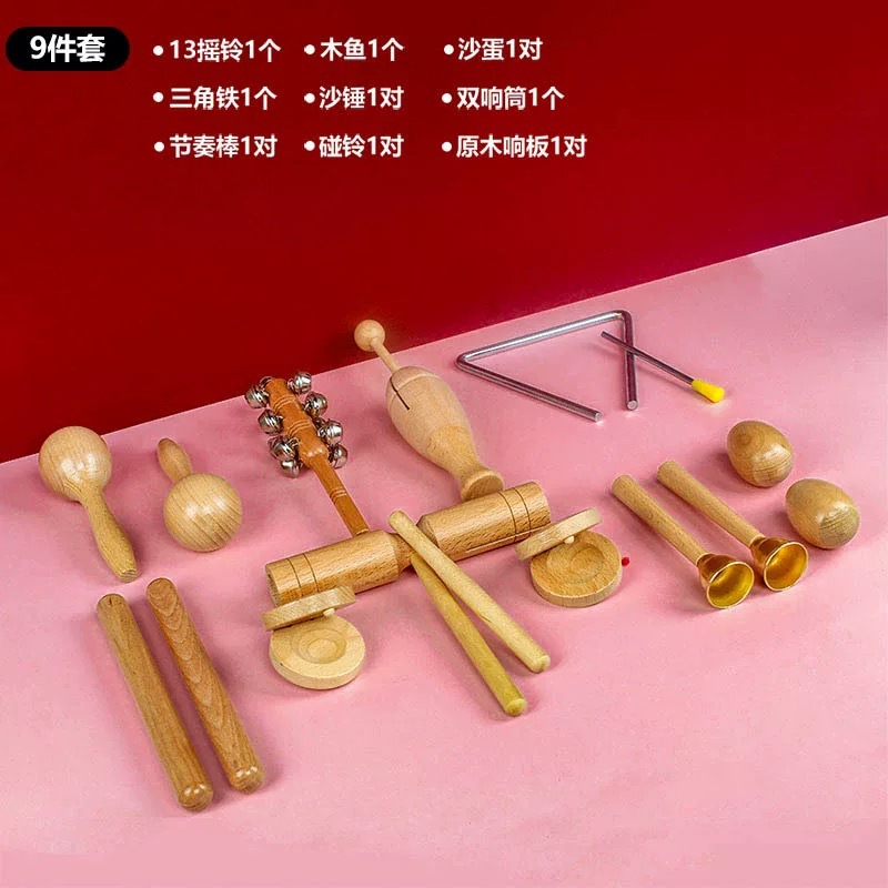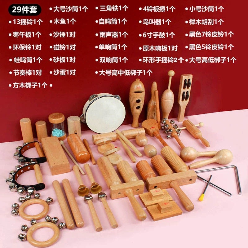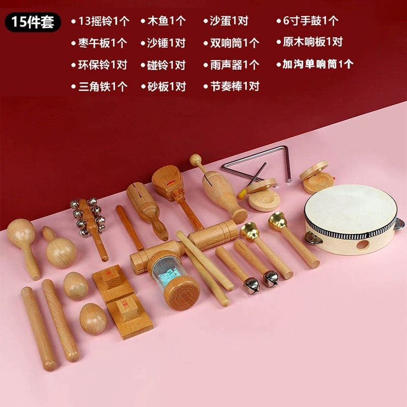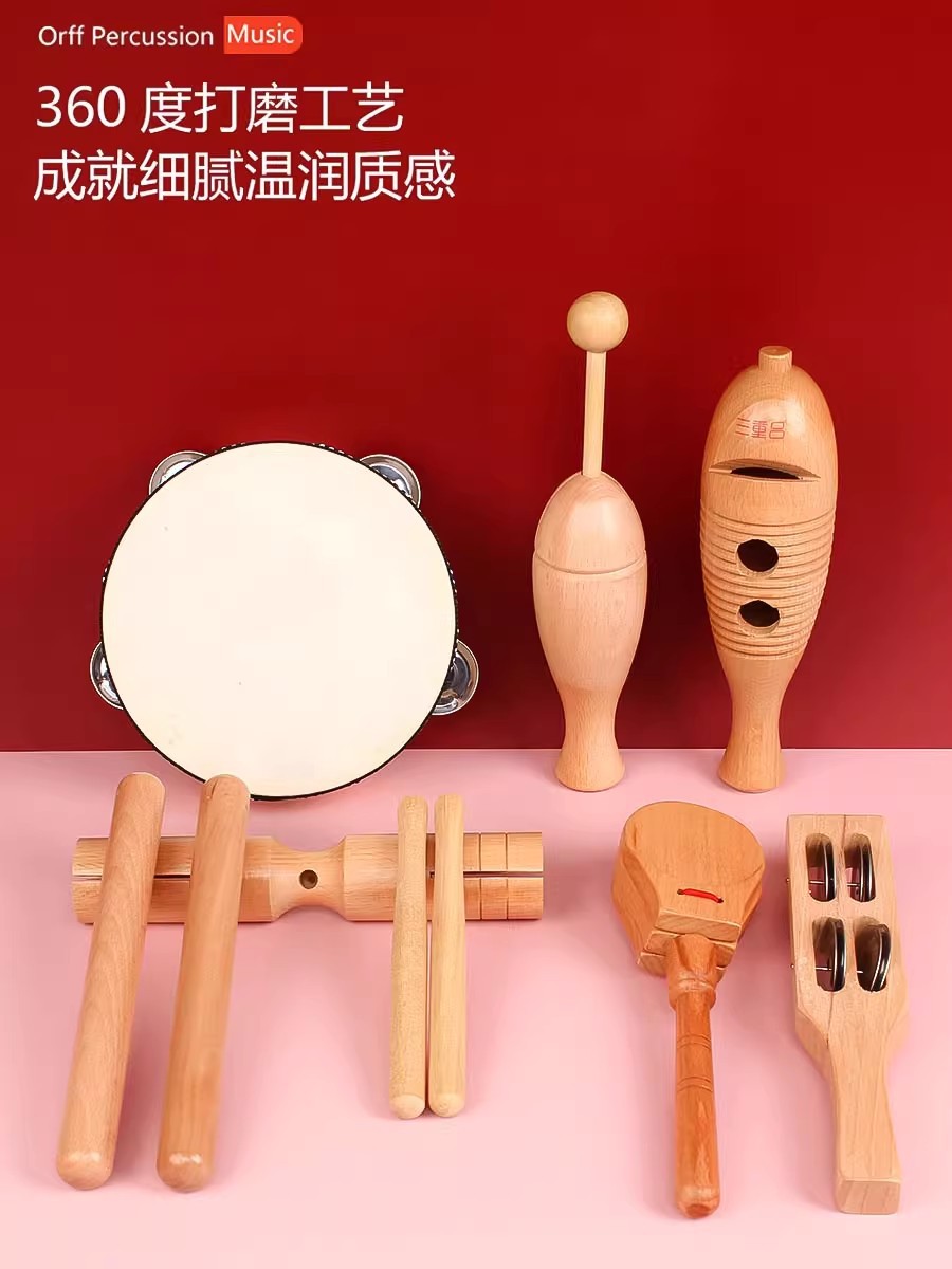 Orff 타악기 통나무 세트 모래 해머 딸랑이 양가죽 탬버린 링 보드 유치원 초등학교 교육 보조 도구 전체 세트