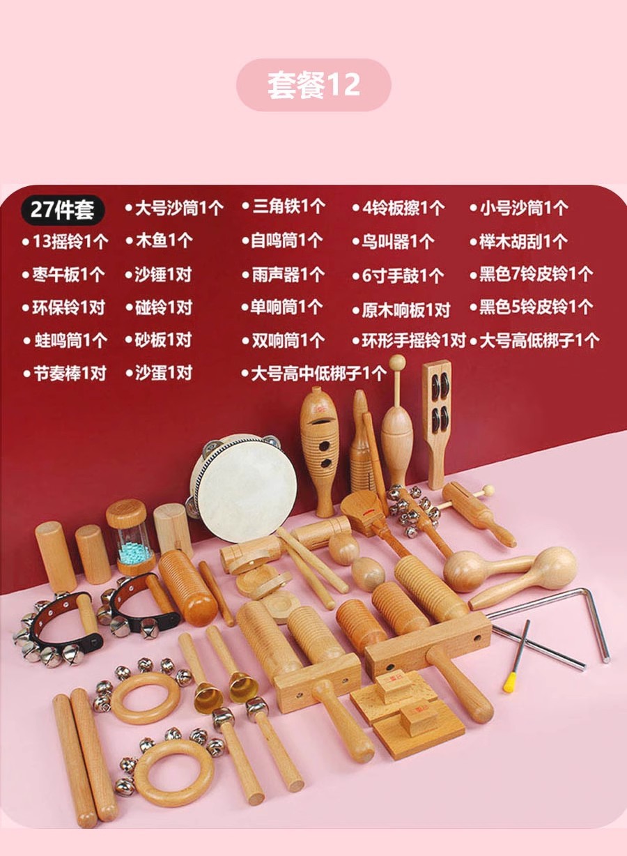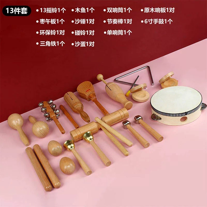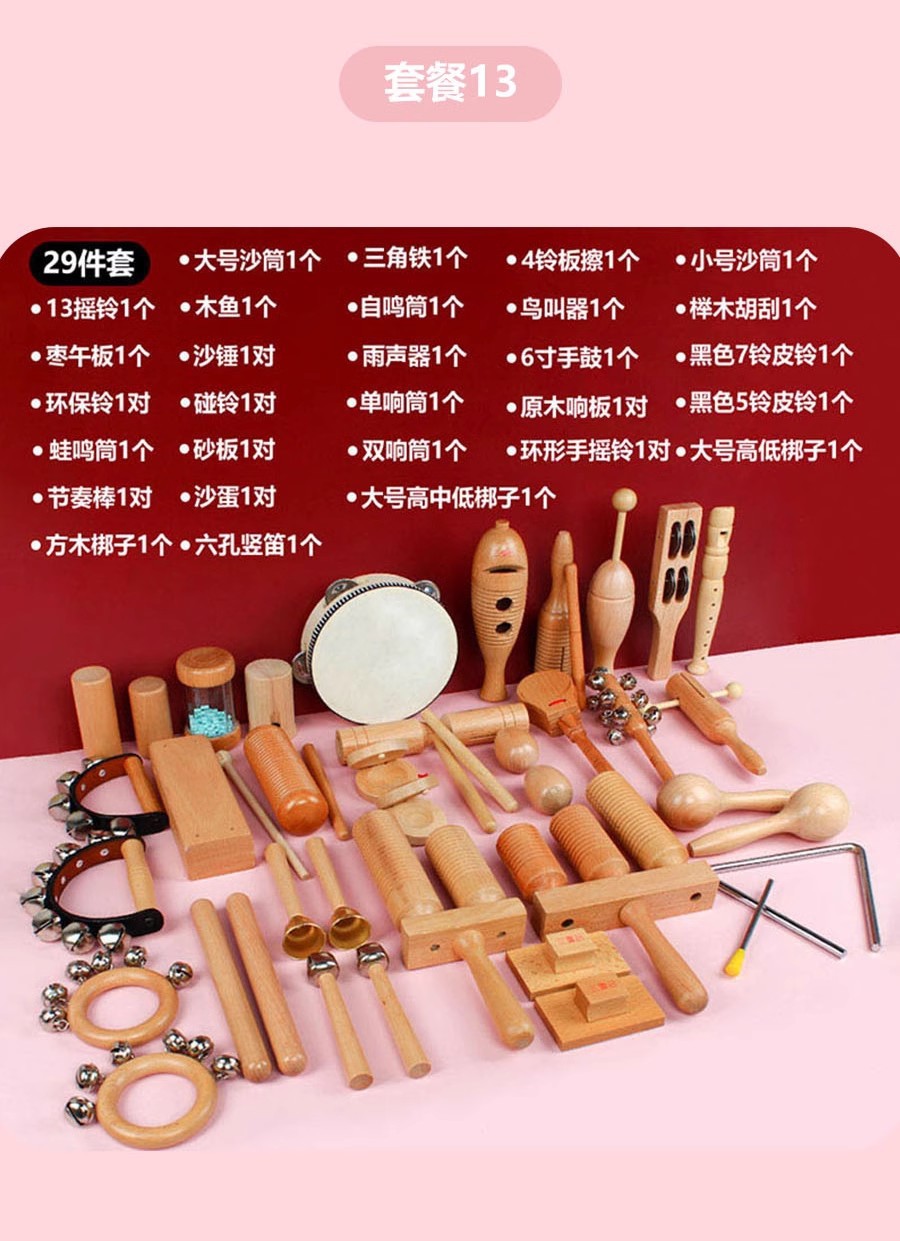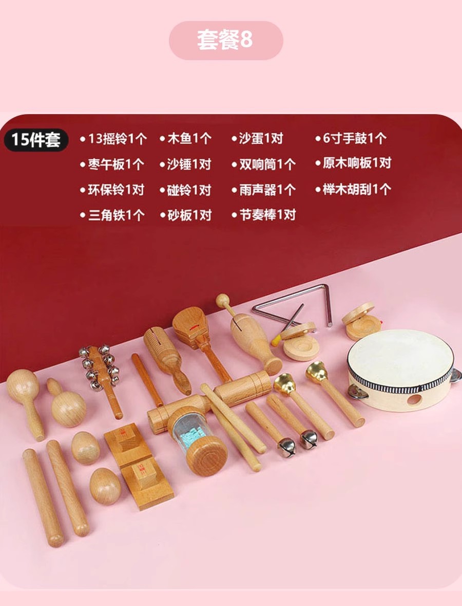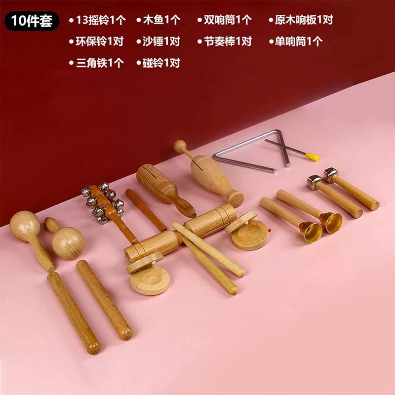 Orff 타악기 통나무 세트 모래 해머 딸랑이 양가죽 탬버린 링 보드 유치원 초등학교 교육 보조 도구 전체 세트