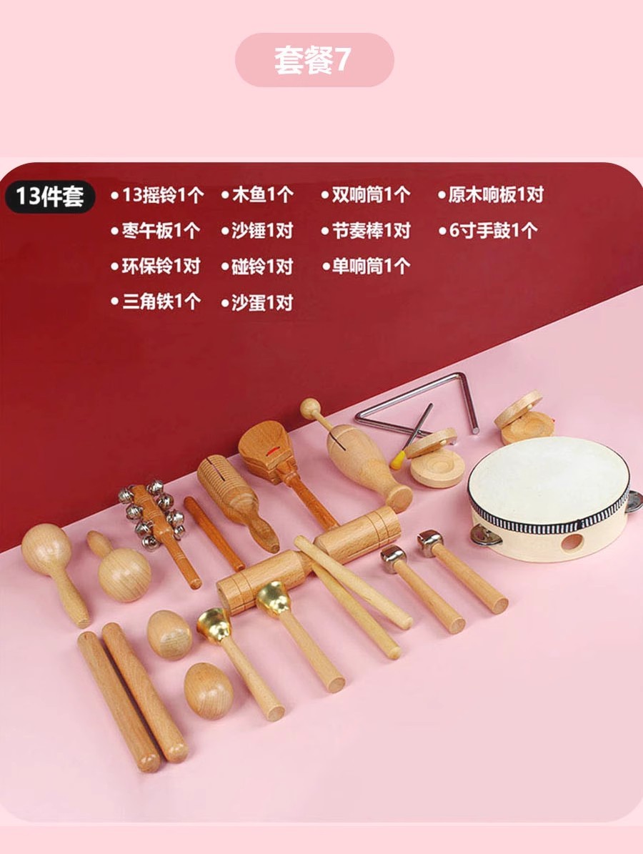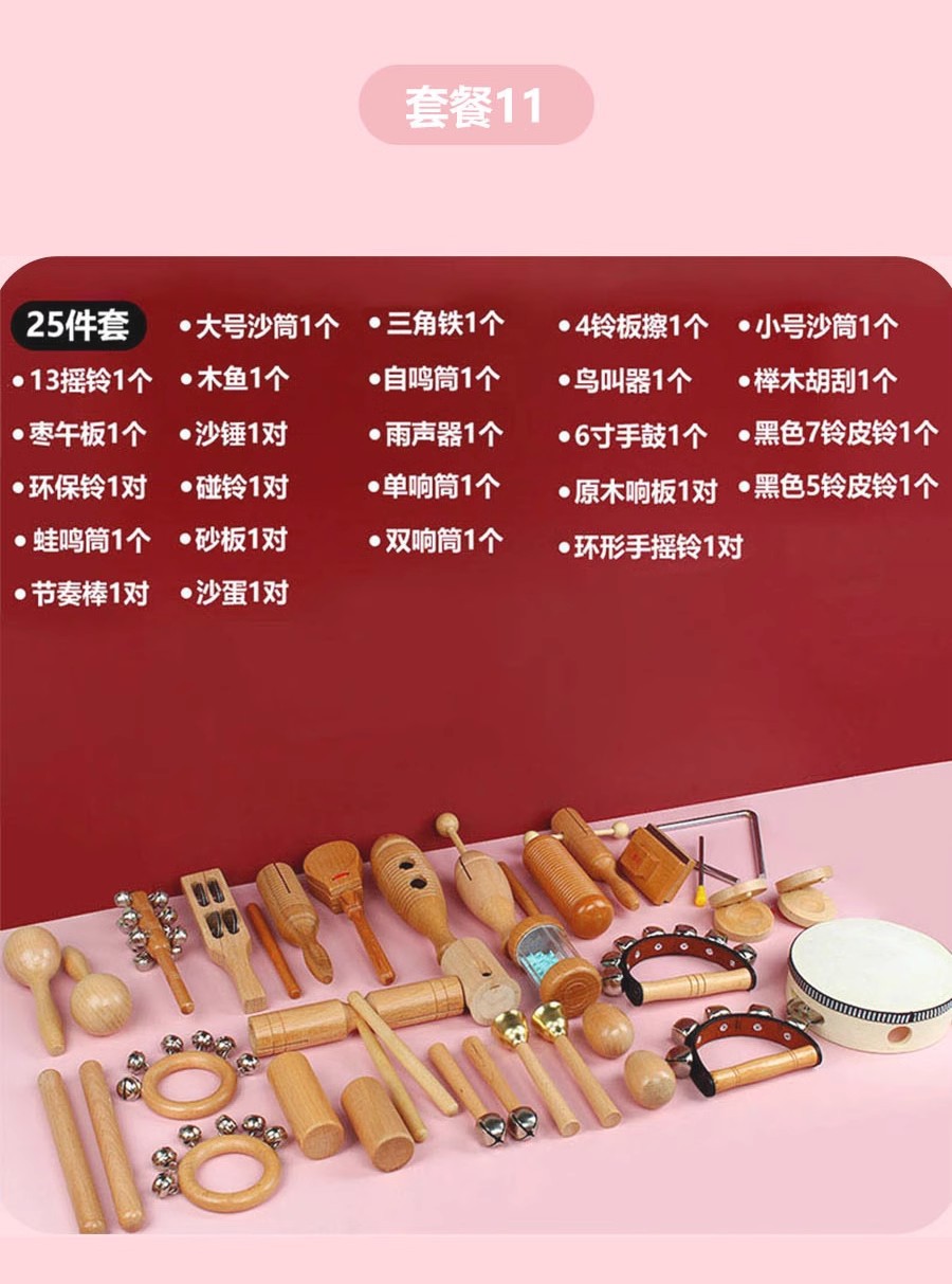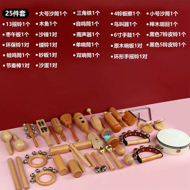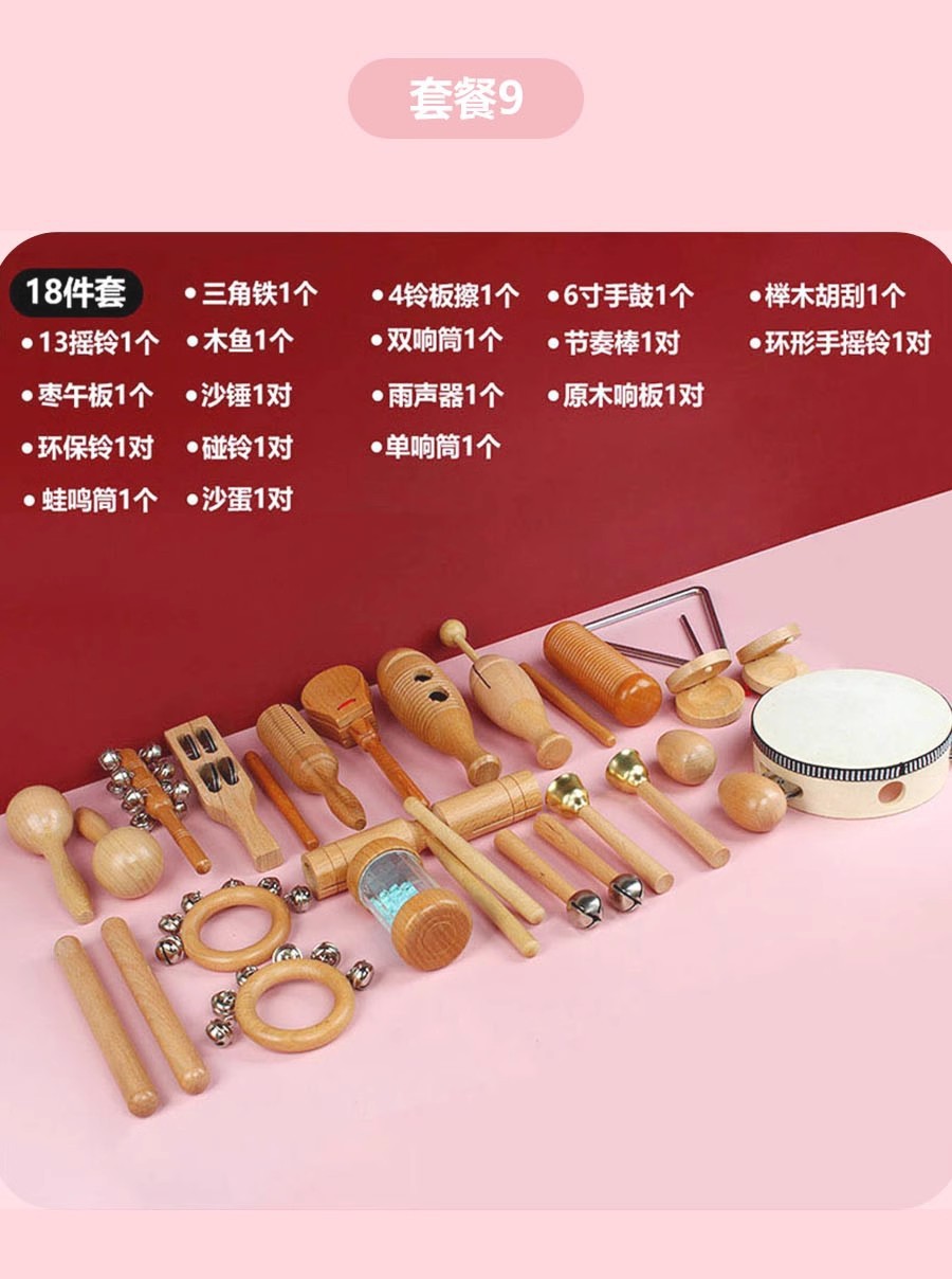 Orff 타악기 통나무 세트 모래 해머 딸랑이 양가죽 탬버린 링 보드 유치원 초등학교 교육 보조 도구 전체 세트
