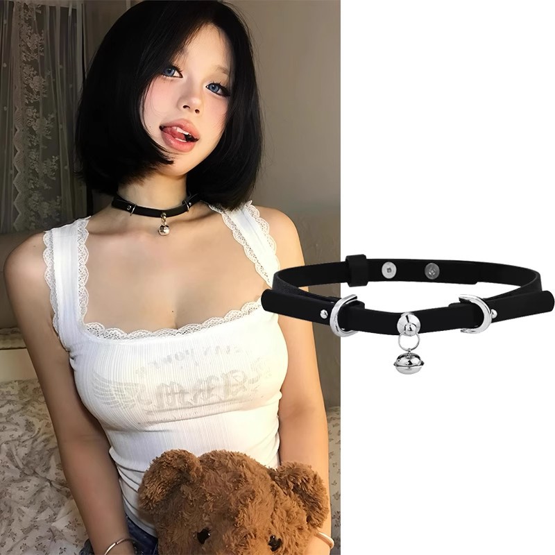 초커 바이노럴 작은 벨 PU 가죽 칼라 유행 쇄골 체인 목 벨트 크리스마스 성격 유행 목 체인 올매치스토어 가기