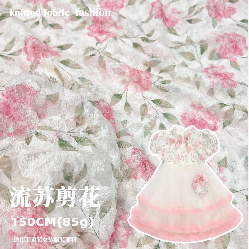 Tassel Chiffon 꽃 원단 한국 귀여운 공주 원피스 원피스 어린이 의류 여성용 보석 가방 인쇄 표면