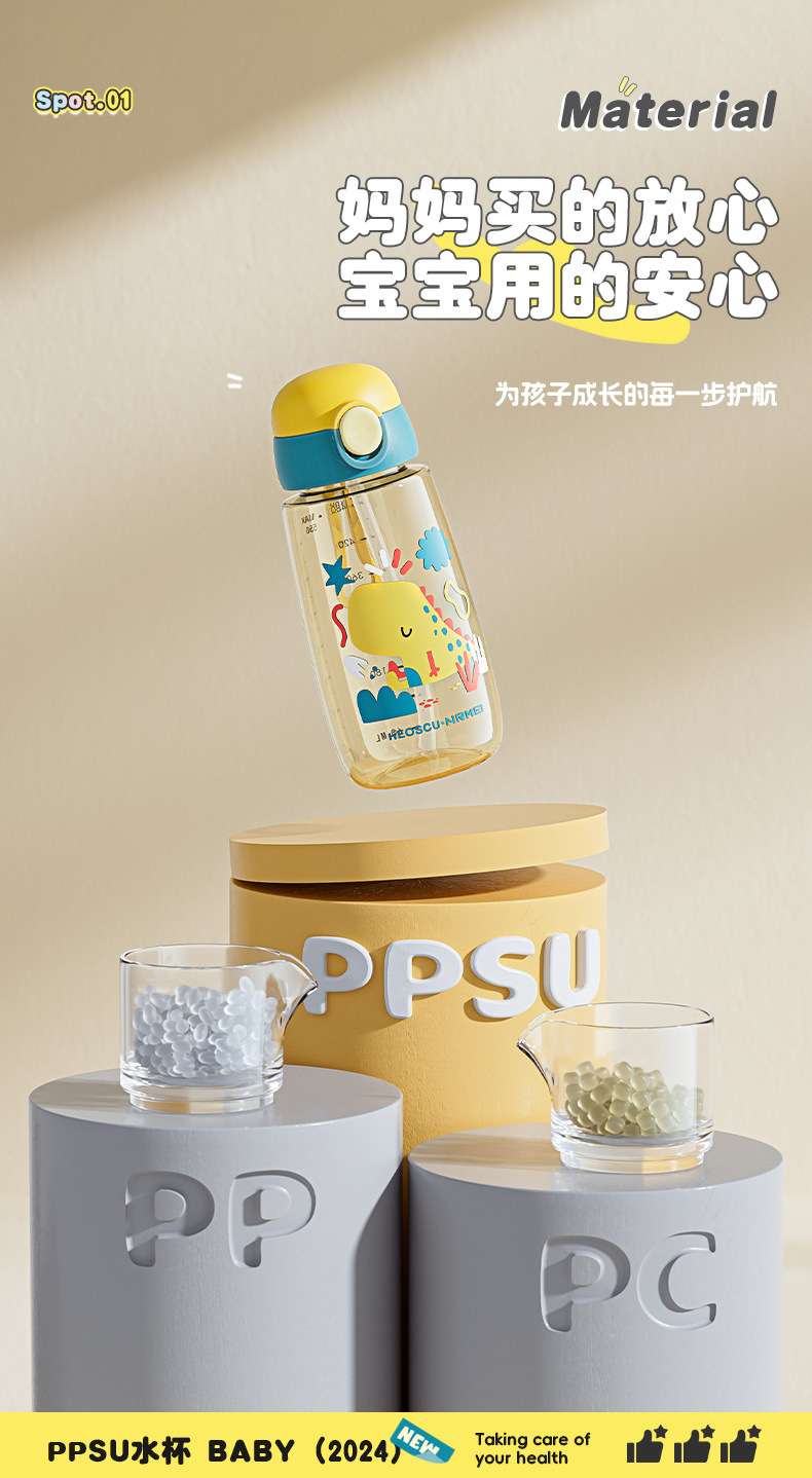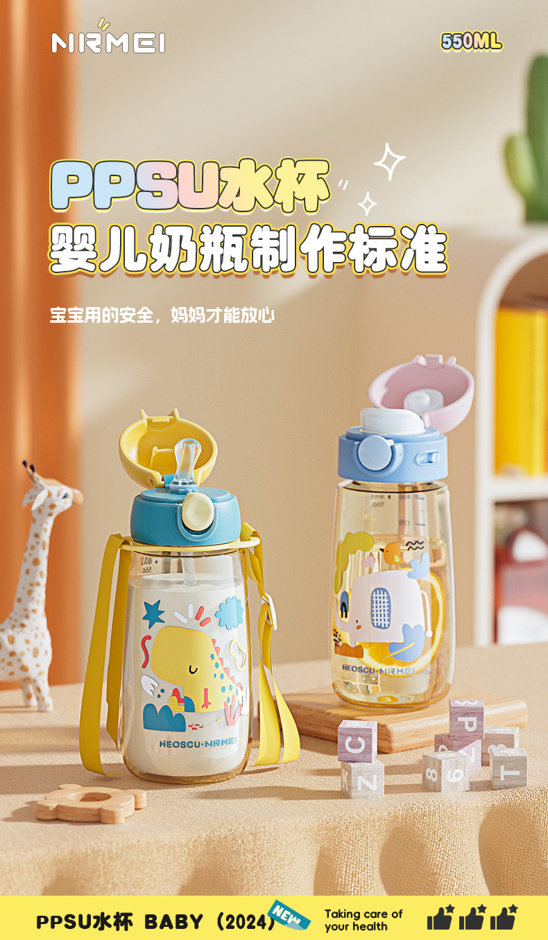 PPSU 플라스틱 컵 어린이 스포츠 낙하 방지 시피 컵 직접 마시는 봄과 여름 학생들은 학교 특별 물 컵 도매로 이동스토어 가기