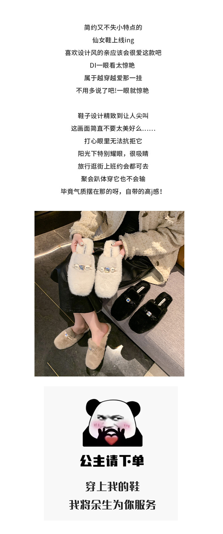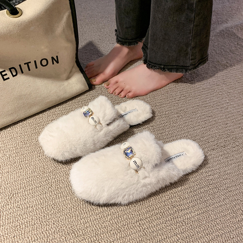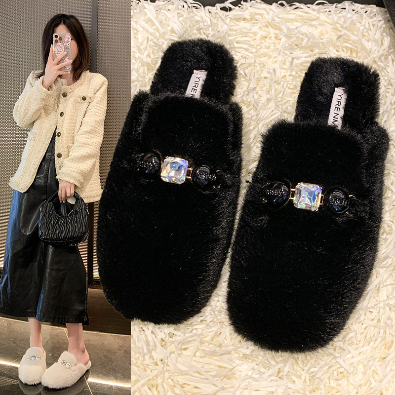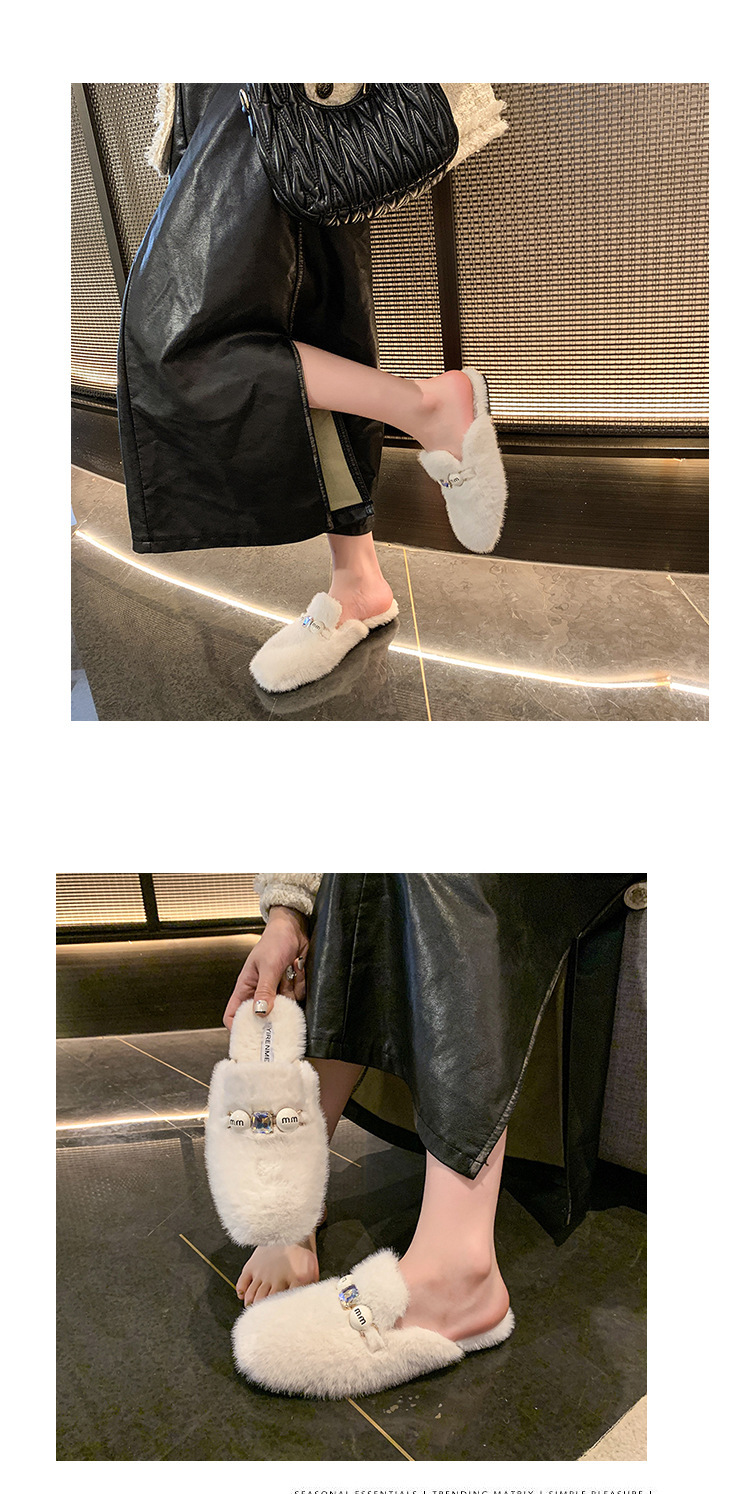 Baotou Mao Mao 슬리퍼 여성은 기모 따뜻한 인터넷 유명 2024 겨울 새로운 패션 다재다능한 면봉 슬리퍼를 착용합니다.스토어 가기
