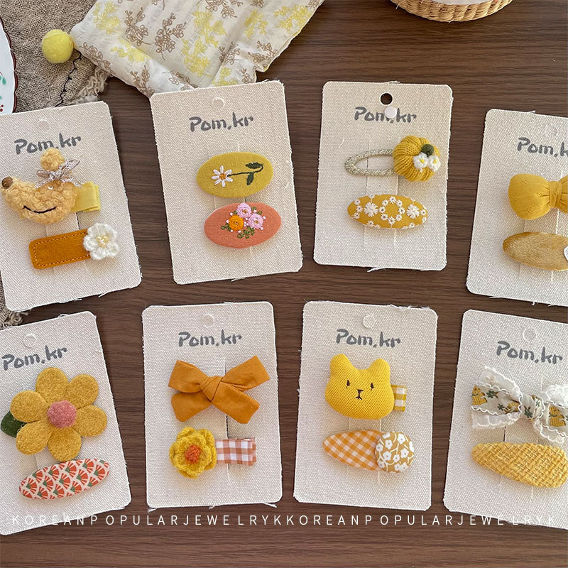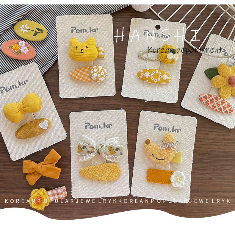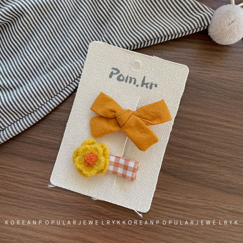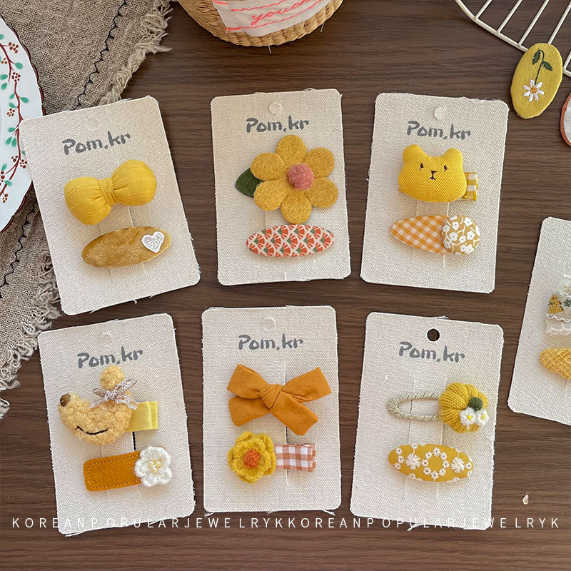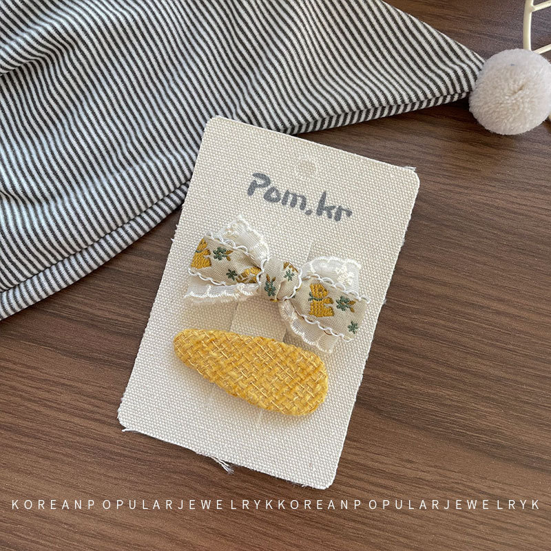 새로운 한국 노란색 스타일 원단 활 어린이 헤어핀 사이드 파편 헤어 달콤한 꽃 사이드 클립 걸스 헤어 액세서리