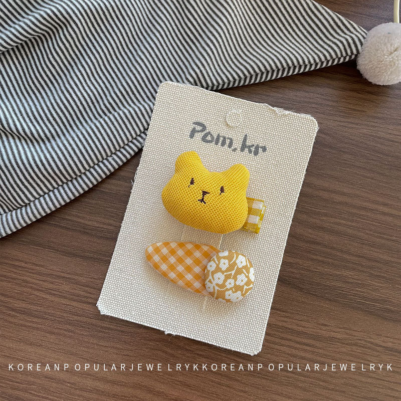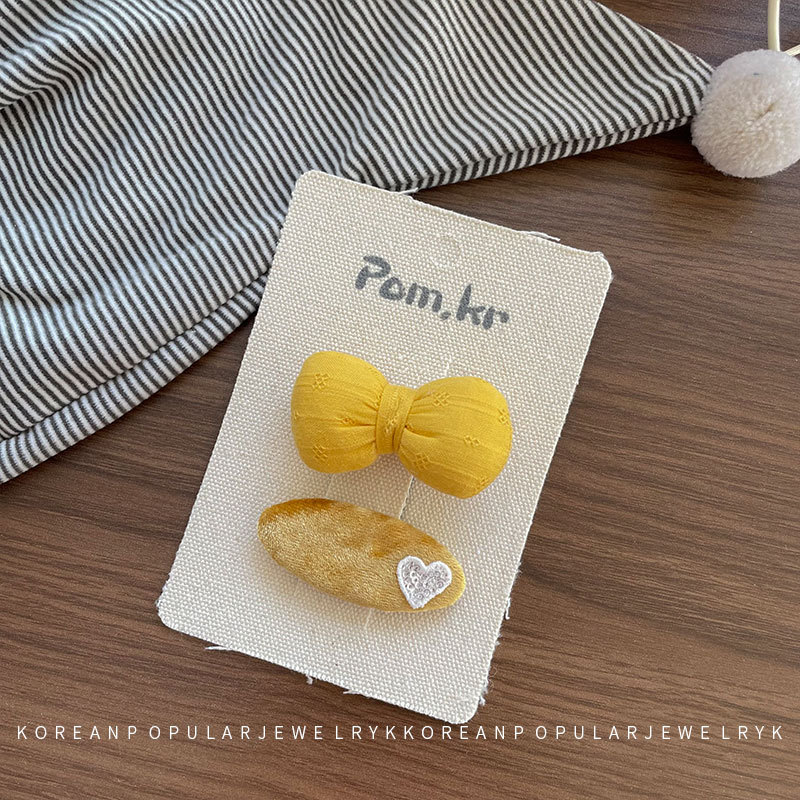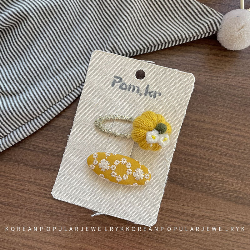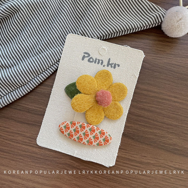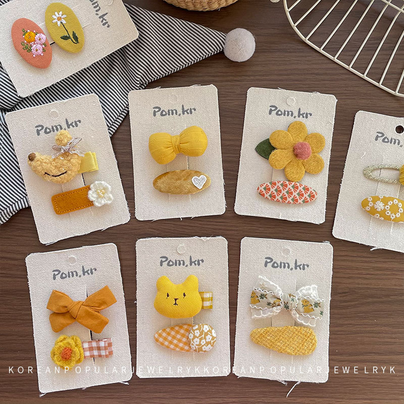 새로운 한국 노란색 스타일 원단 활 어린이 헤어핀 사이드 파편 헤어 달콤한 꽃 사이드 클립 걸스 헤어 액세서리